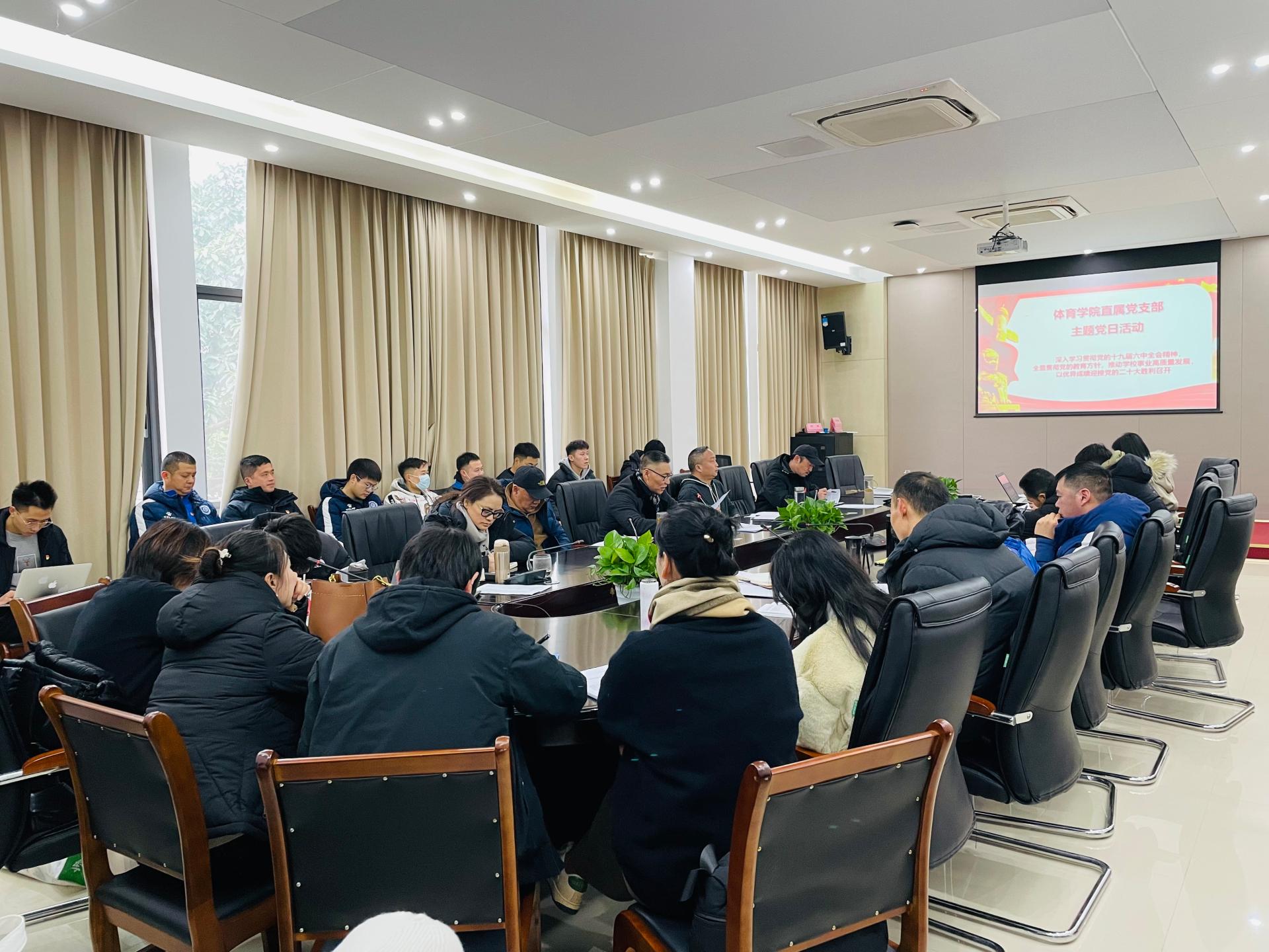 12月28日,九游电竞(NINE GAME)·官方网站直属党支部在游泳池201会议室开展本月主题党日活动,深入学习贯彻党的十九届六中全会精神,全体师生党员参加,直属党支部书记杨远波主持会议。