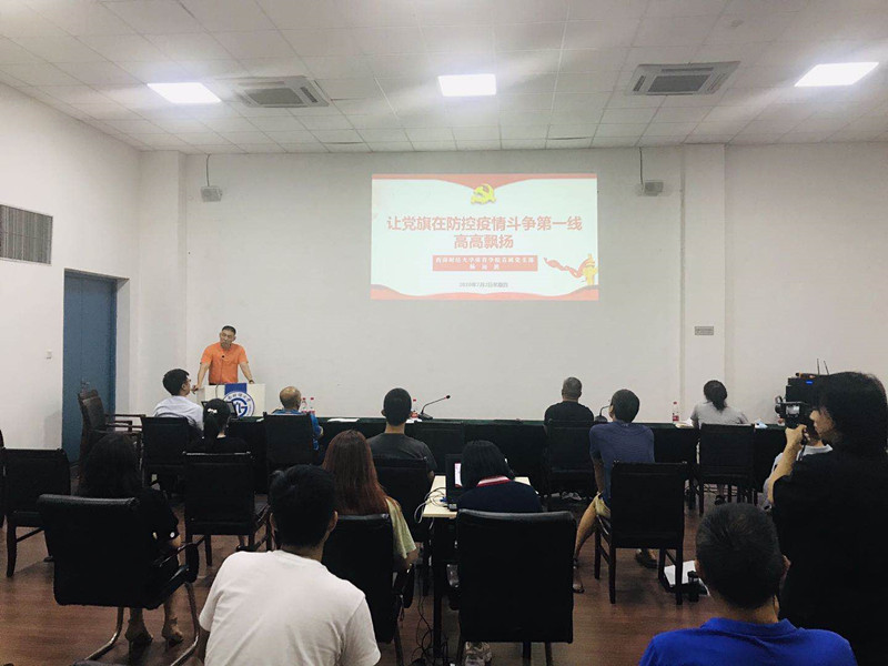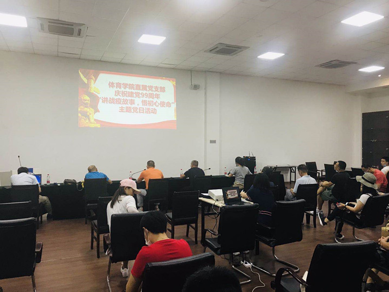 7月2日下午,九游电竞(NINE GAME)·官方网站直属党支部在体育馆会议室召开“庆祝建党99周年‘讲战疫故事,悟初心使命‘主题党日活动”。九游电竞(NINE GAME)·官方网站直属党支部全体教工党员、学生党员代表参会,会议由直属党支部书记杨远波主持。