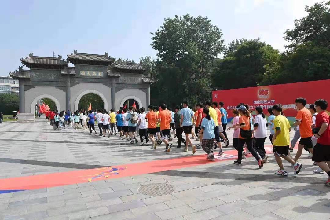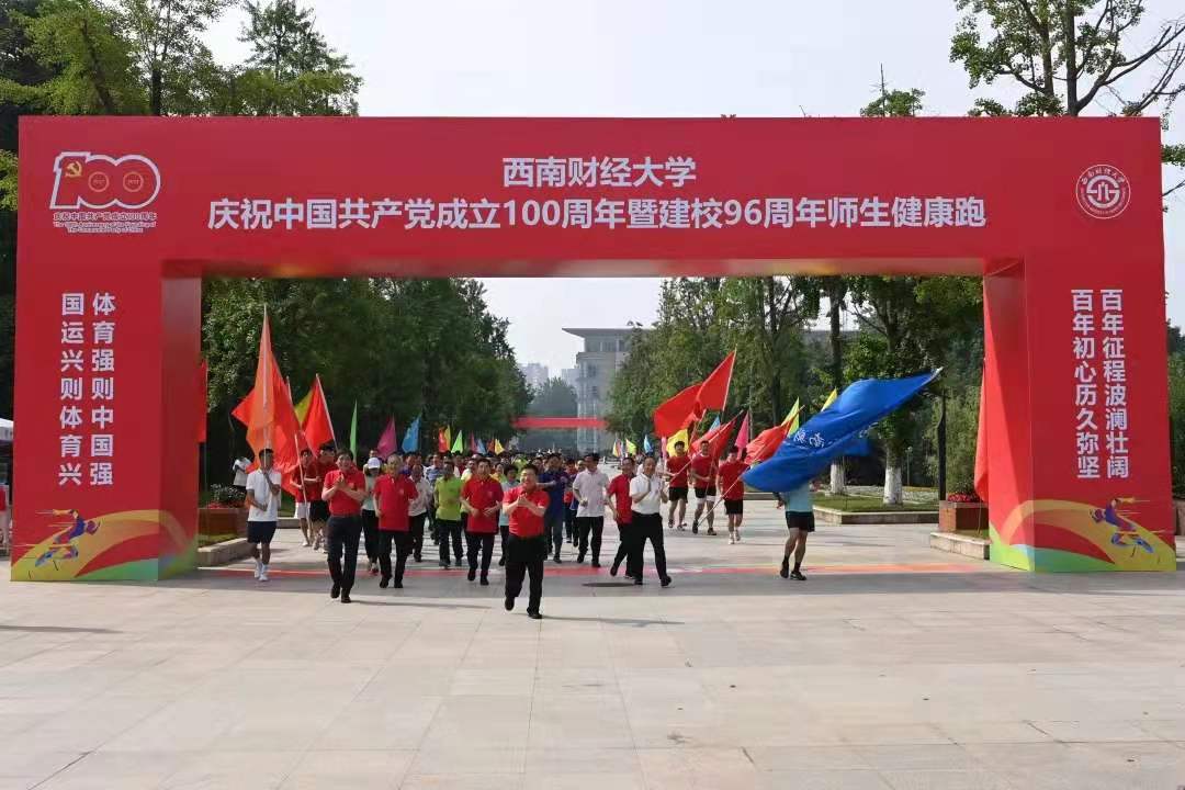6月2日,西南财经大学在柳林校区举行庆祝中国共产党成立100周年暨建校96周年师生健康跑,以寓教于行、健康向上的体育运动进一步激发师生爱党爱国爱校热情,用赤诚饱满、昂扬奋发的师生风貌向党的百年华诞和建校纪念日献礼。校领导赵德武、卓志、彭龙、曾道荣、范卫宏、史代敏、张邦富等领跑,中层干部、教职工和学生代表参加健康跑。