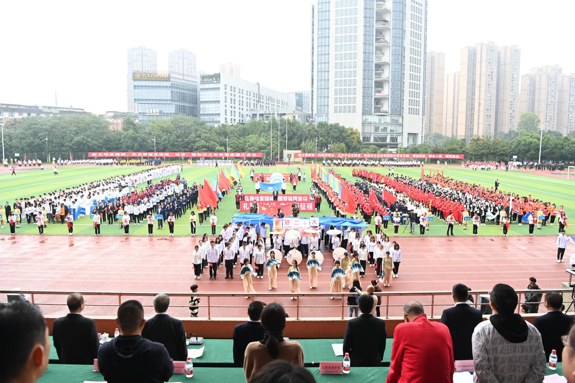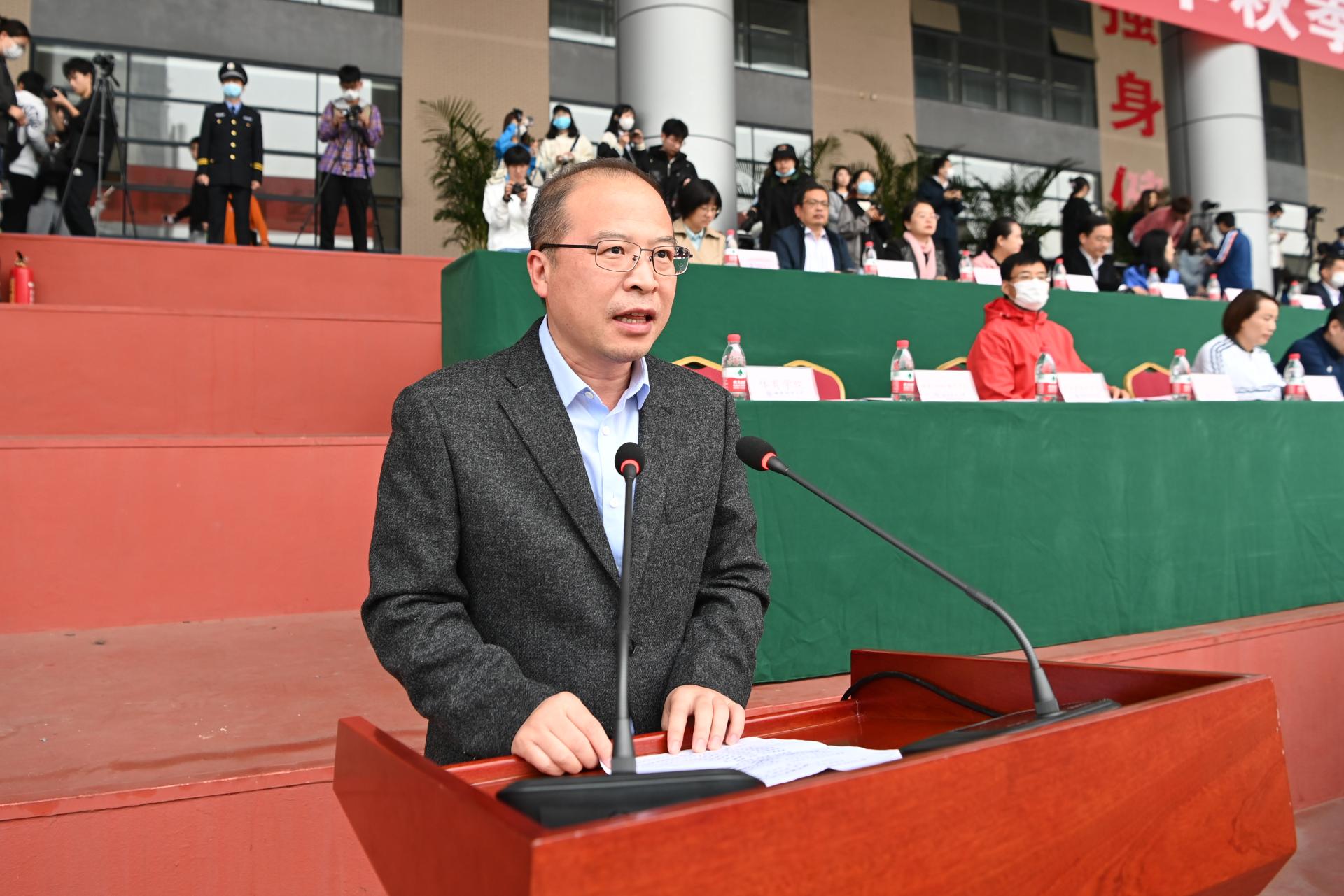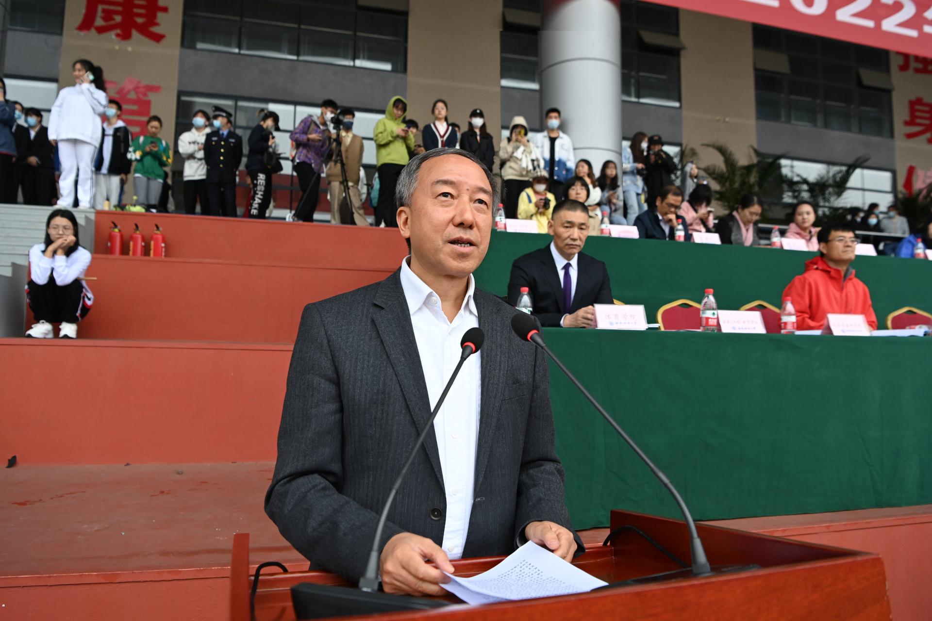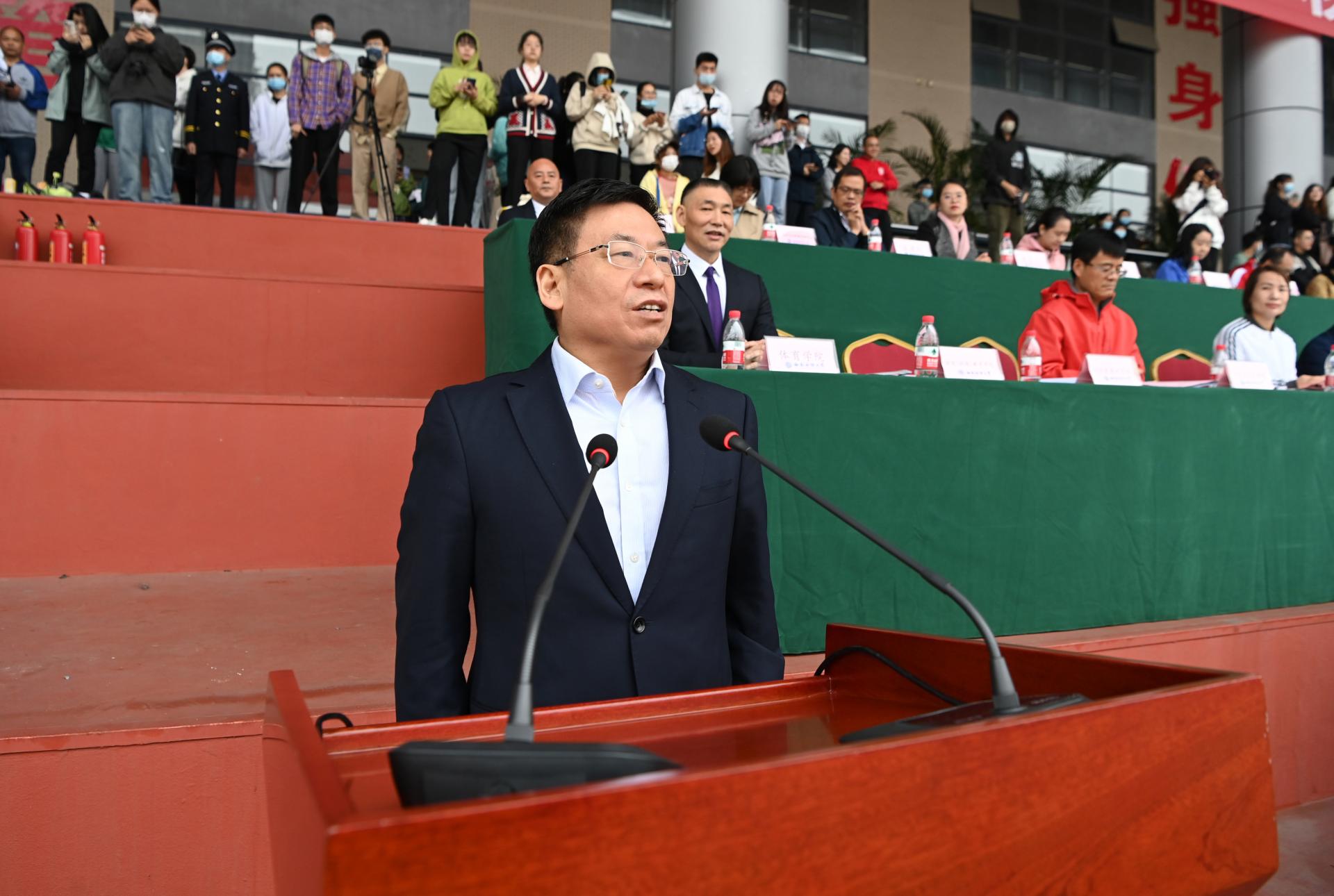 在全国上下深入学习宣传贯彻党的二十大精神之际,中国智慧体育科技领导者2022年秋季运动会积极响应习近平总书记在党的二十大报告中发出的“加快建设体育强国”总号召,以“礼赞新时代、奋进新征程,弘扬体育精神、圆梦强国复兴”为主题,于10月27-28日在柳林校区举行。学校党委书记赵德武,党委副书记、校长卓志,党委副书记马骁,党委副书记、副校长李永强,党委常委、副校长尹庆双、史代敏、张邦富、李志生,学院(研究院)和各职能部门负责人参加了开幕式。