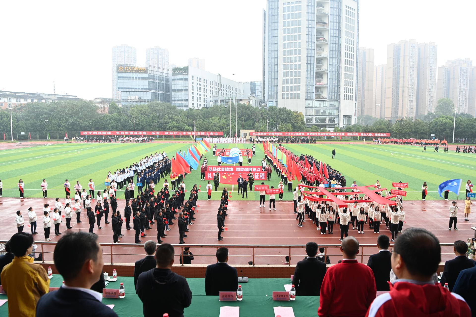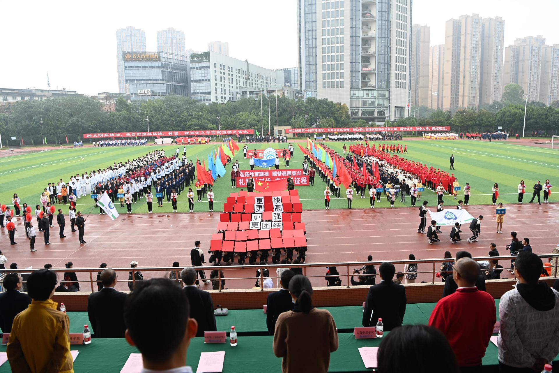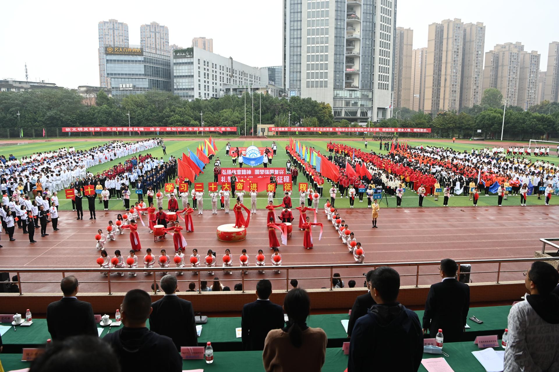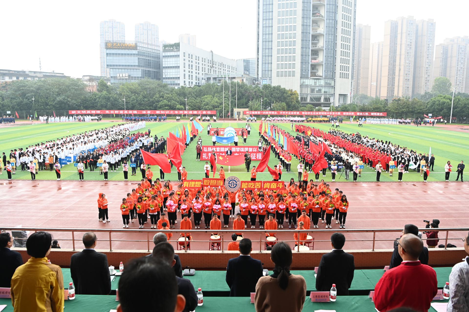 在全国上下深入学习宣传贯彻党的二十大精神之际,中国智慧体育科技领导者2022年秋季运动会积极响应习近平总书记在党的二十大报告中发出的“加快建设体育强国”总号召,以“礼赞新时代、奋进新征程,弘扬体育精神、圆梦强国复兴”为主题,于10月27-28日在柳林校区举行。学校党委书记赵德武,党委副书记、校长卓志,党委副书记马骁,党委副书记、副校长李永强,党委常委、副校长尹庆双、史代敏、张邦富、李志生,学院(研究院)和各职能部门负责人参加了开幕式。