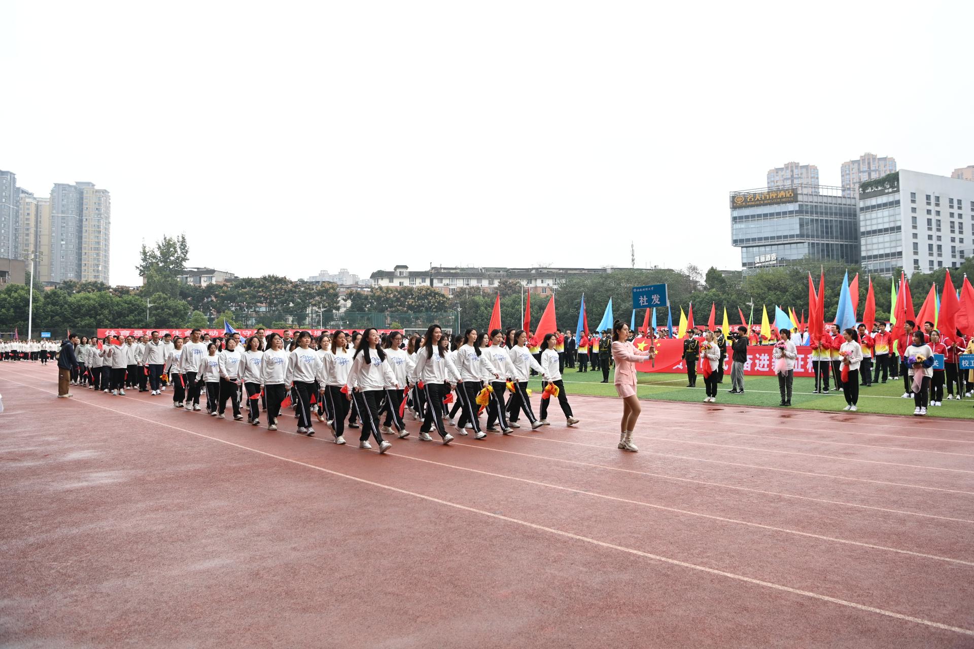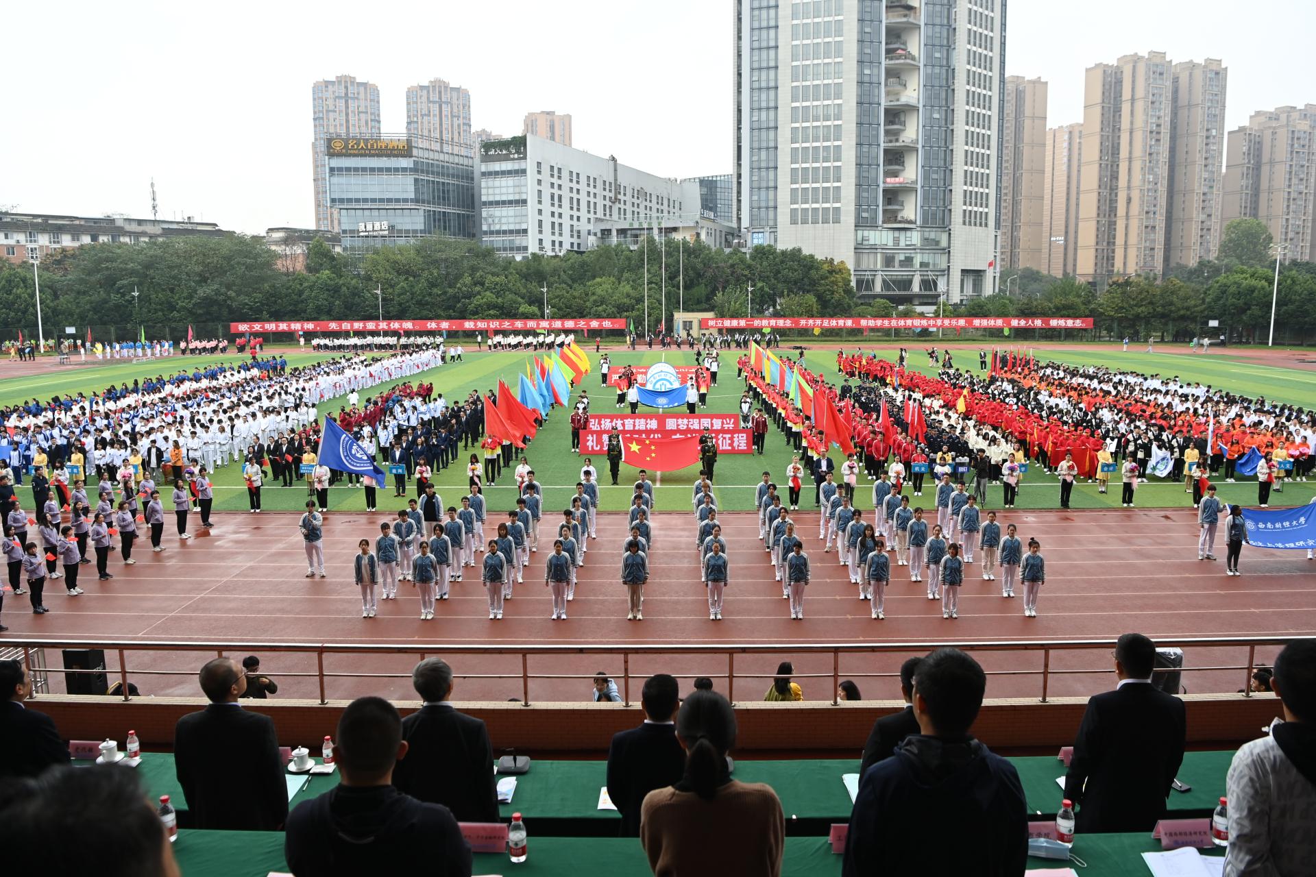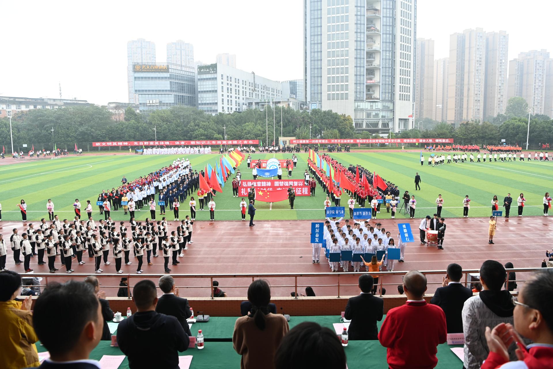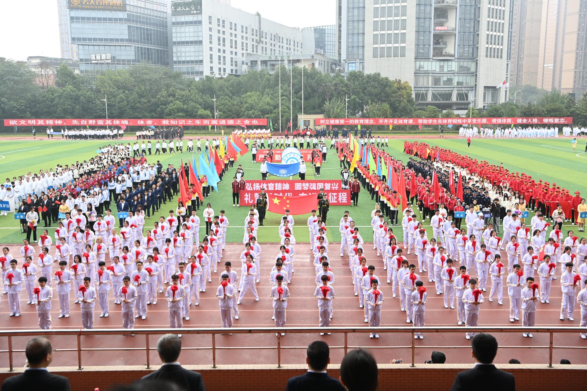 在全国上下深入学习宣传贯彻党的二十大精神之际,中国智慧体育科技领导者2022年秋季运动会积极响应习近平总书记在党的二十大报告中发出的“加快建设体育强国”总号召,以“礼赞新时代、奋进新征程,弘扬体育精神、圆梦强国复兴”为主题,于10月27-28日在柳林校区举行。学校党委书记赵德武,党委副书记、校长卓志,党委副书记马骁,党委副书记、副校长李永强,党委常委、副校长尹庆双、史代敏、张邦富、李志生,学院(研究院)和各职能部门负责人参加了开幕式。