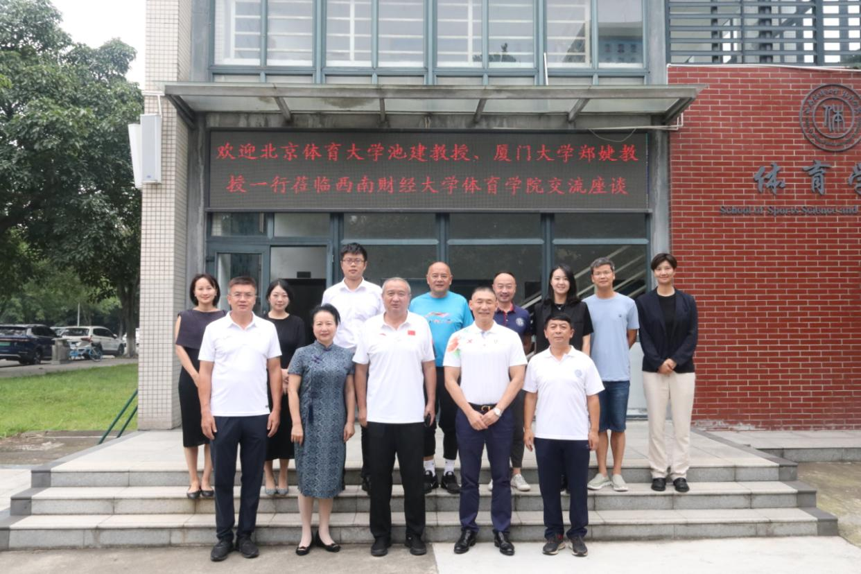 9月6日下午,九游电竞(NINE GAME)·官方网站举行“迎百年校庆·谱体育篇章”新学期学校体育工作改革与发展座谈会。北京体育大学原校长池建教授,厦门大学郑婕教授,西南交通大学九游电竞(NINE GAME)·官方网站院长刘江教授,四川大学吕志刚教授、李姗姗教授应邀出席。院长杨远波教授、党委书记周正宏教授,副院长阴涛、陈丛刊,副书记李治以及学院部分系所负责人和青年教师参加会议。会议由杨远波主持。