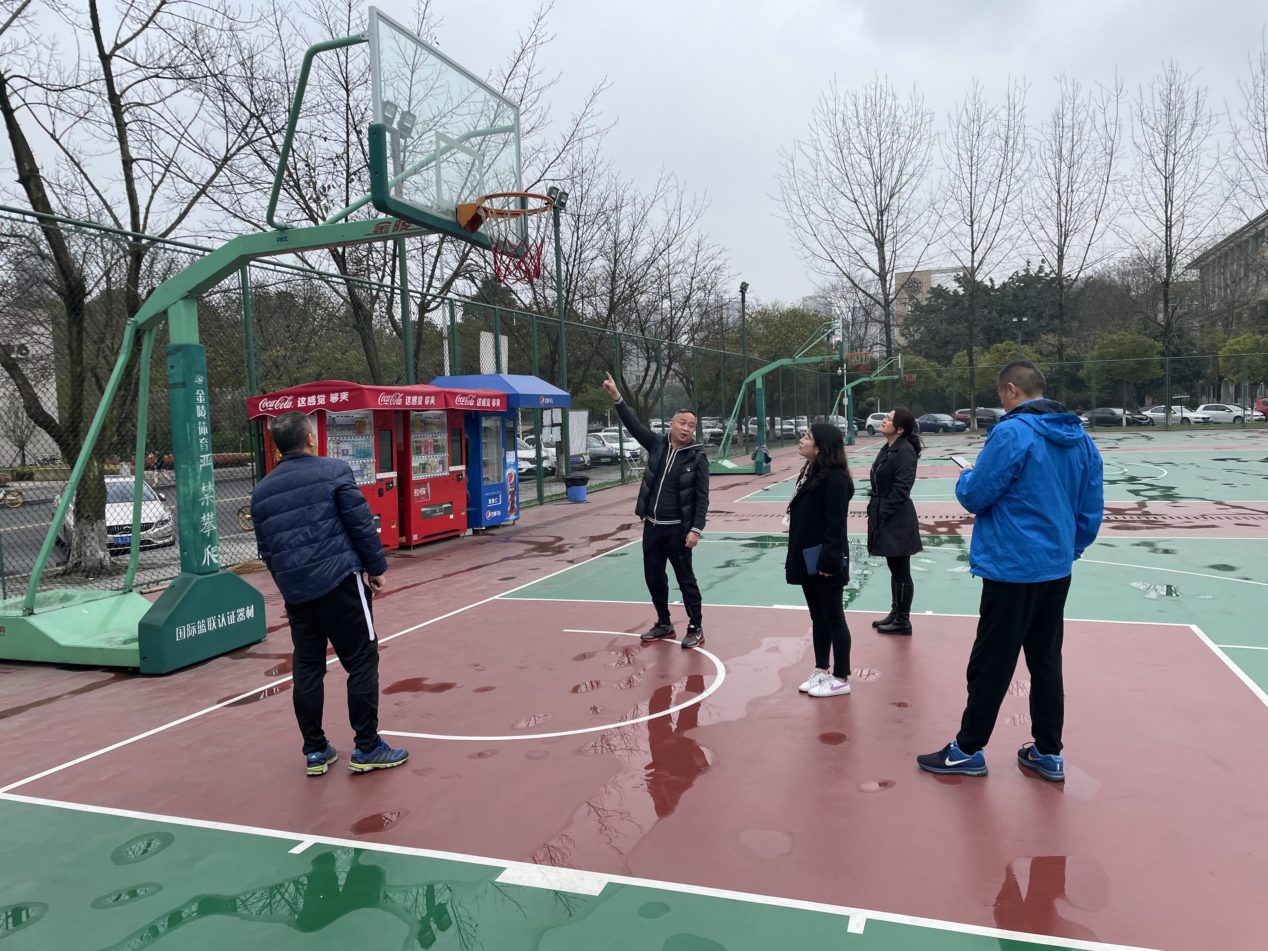 为确保新学期中国智慧体育科技领导者工作的安全有序进行, 3月9日、3月11日下午,副院长周正宏带领公共体育系、群体竞赛中心、竞技体育系、体育场馆中心负责人及相关老师,分别对柳林校区、光华校区的体育馆、篮球场、排球场、网球场、足球场、素质拓展场地等教学地点进行了深入、全面的安全检查。