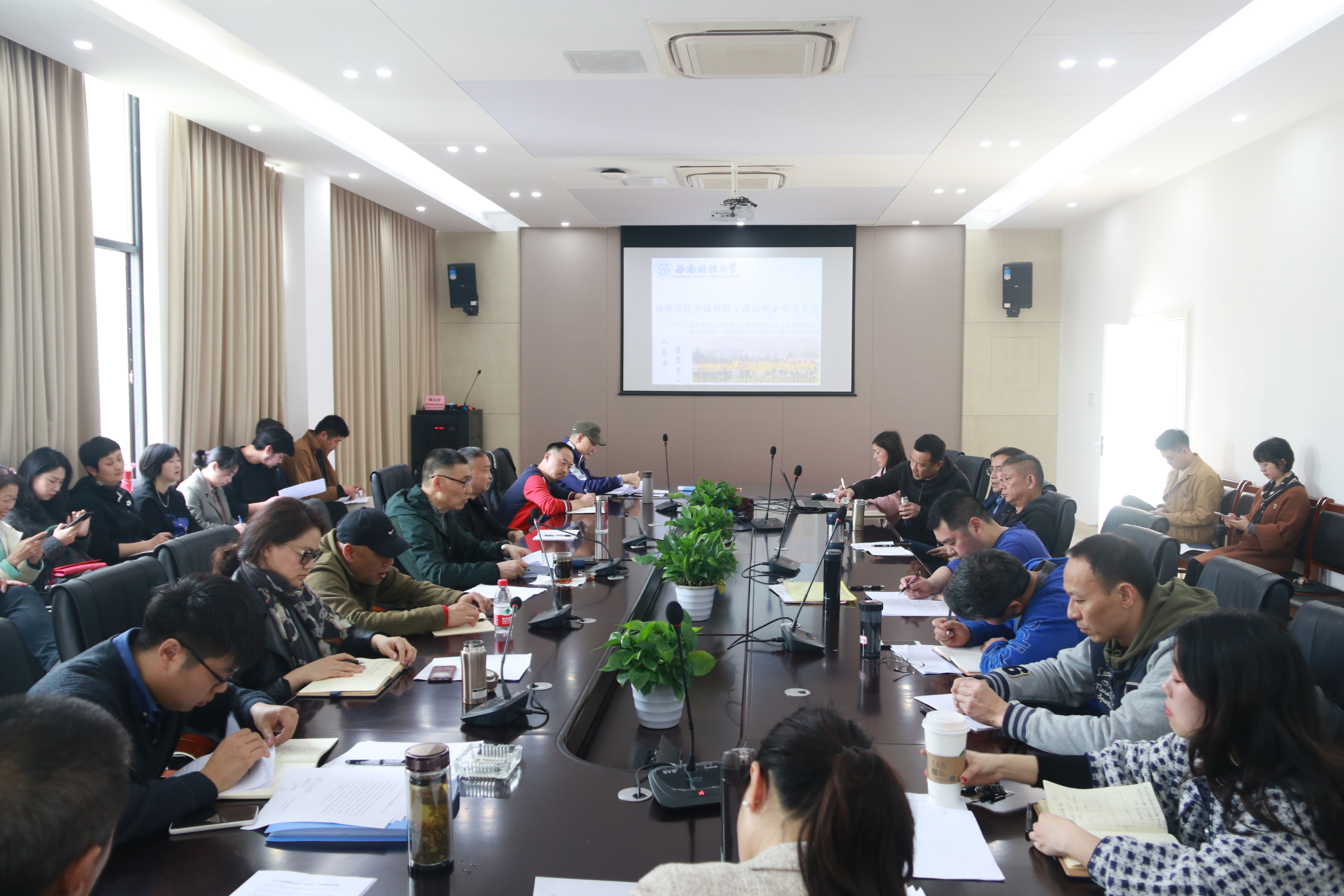 3月16日,九游电竞(NINE GAME)·官方网站在游泳池201会议室召开全体教职工政治理论学习会,学院领导班子和全体教职工参加学习,会议由杨远波院长主持。