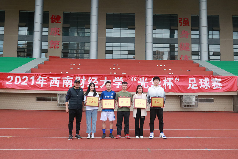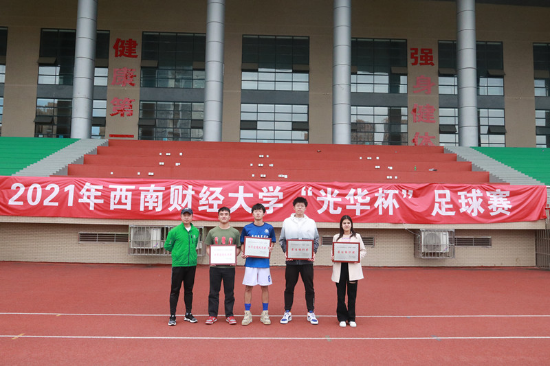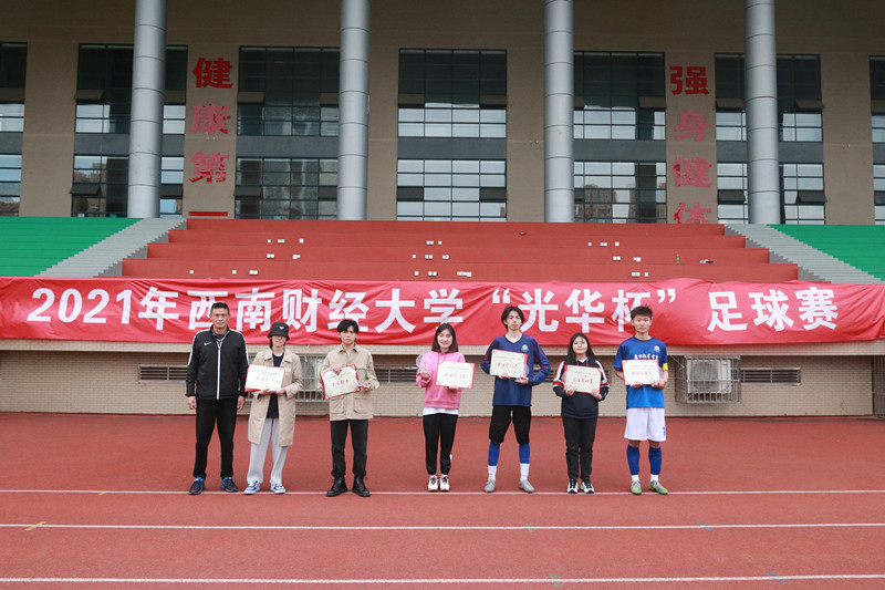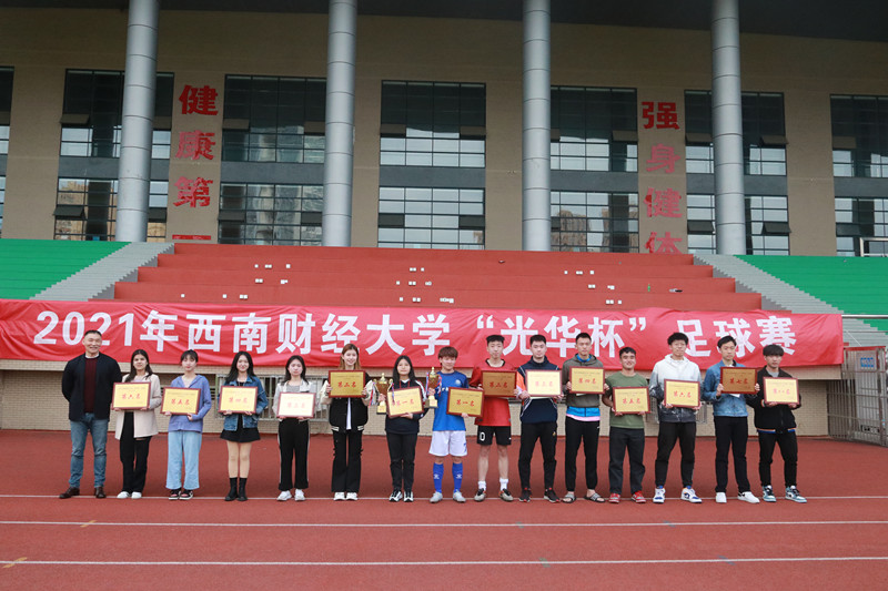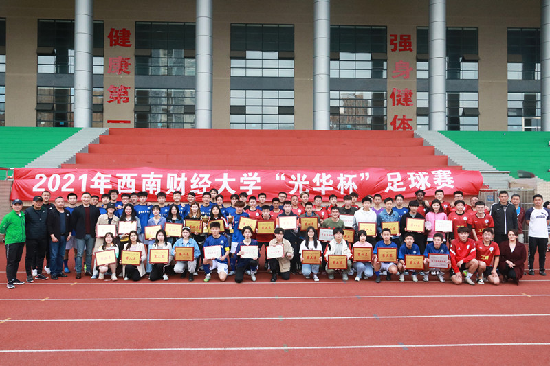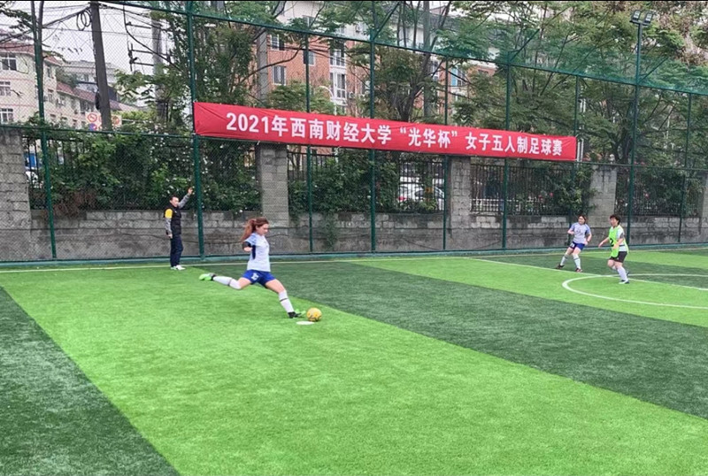 2021年西南财经大学“光华杯”足球赛于3月29日—4月20日在柳林校区举行。本次比赛设置了“男子十一人制”和“女子五人制”两个组别及颠球、运球接力两项趣味足球赛,共有来自15个学院、34支队伍(含教工队),约450余人参加。