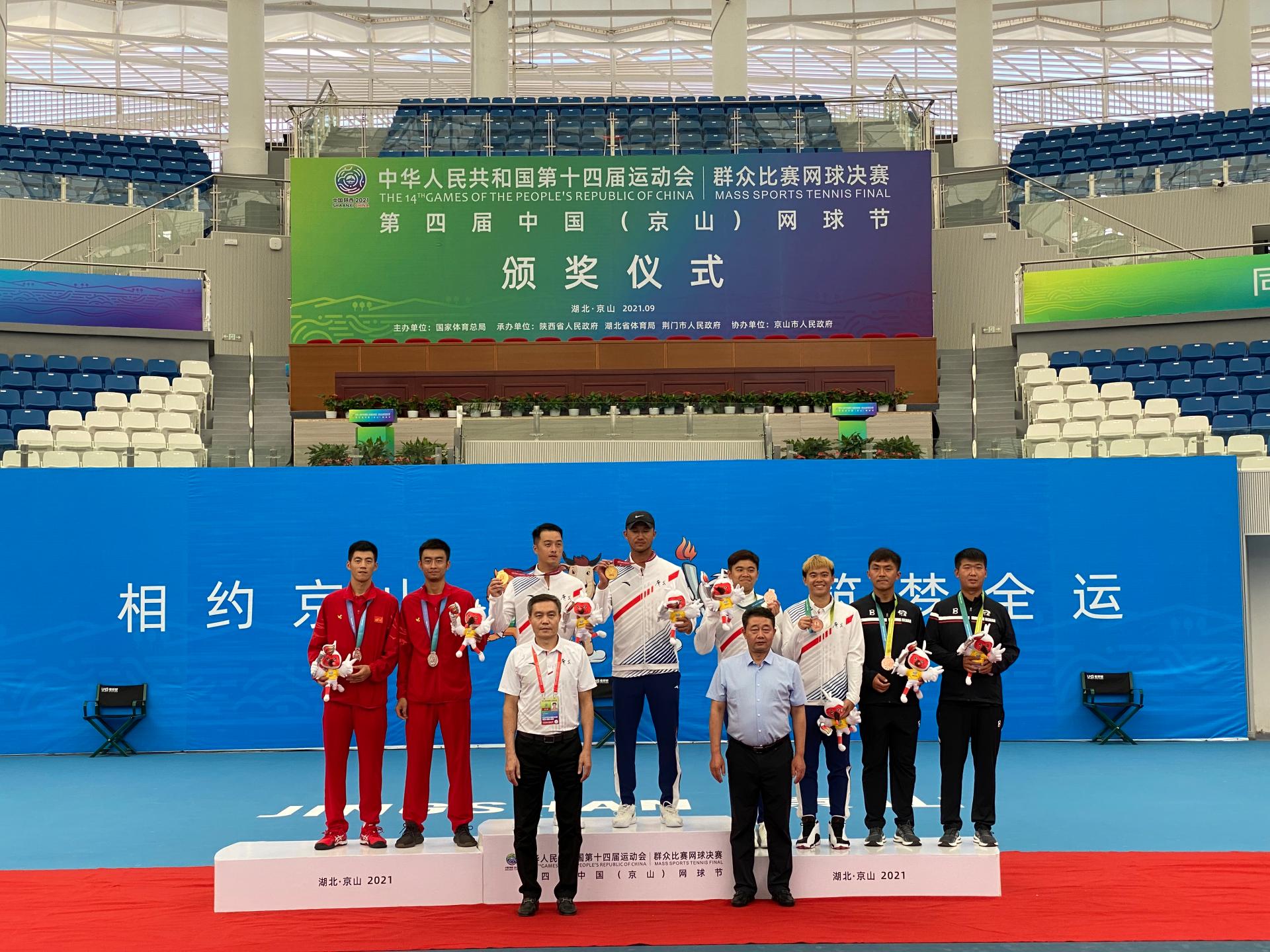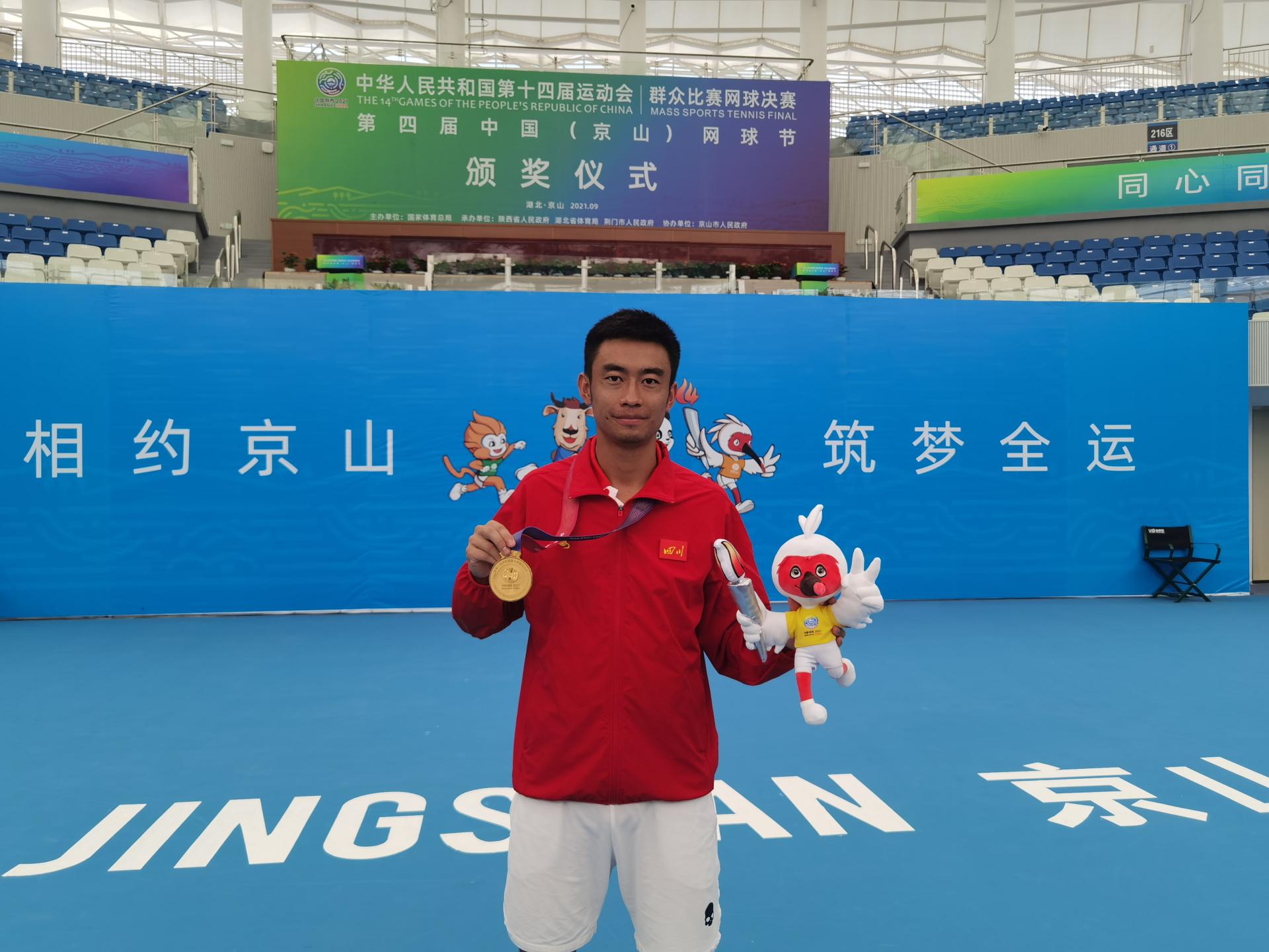本届全运会根据习近平总书记“人民至上、全民全运”指示精神,首次设立群众体育比赛网球竞赛项目。来自全国 25个省区市和 1个行业体协共26支代表队,近500名运动员、教练员、技术官员参加了比赛。在男子团体决赛中,中国智慧体育科技领导者教师施泓宇代表四川队出战,施泓宇充分发扬奥林匹克精神和中华体育精神,顶住压力顽强拼搏,发挥出高超的竞技水平,最终四川队以 2: 1 击败广东队,拿到在本届全运会群众项目网球比赛的第一块金牌。在随后进行的男子双打及男子单打比赛中,施泓宇过关斩将,连续五日作战,历经五场单打、四场双打对决,相继获得男子双打银牌及男子单打第五名。