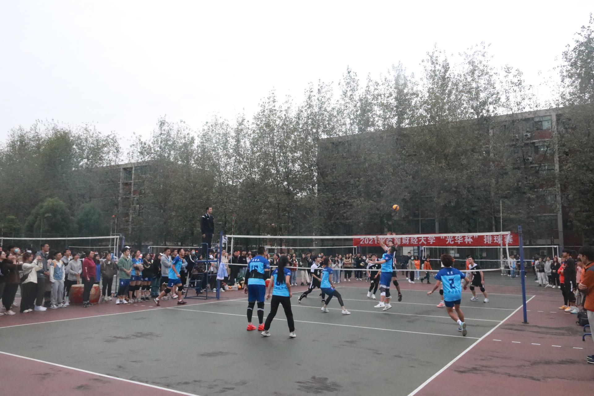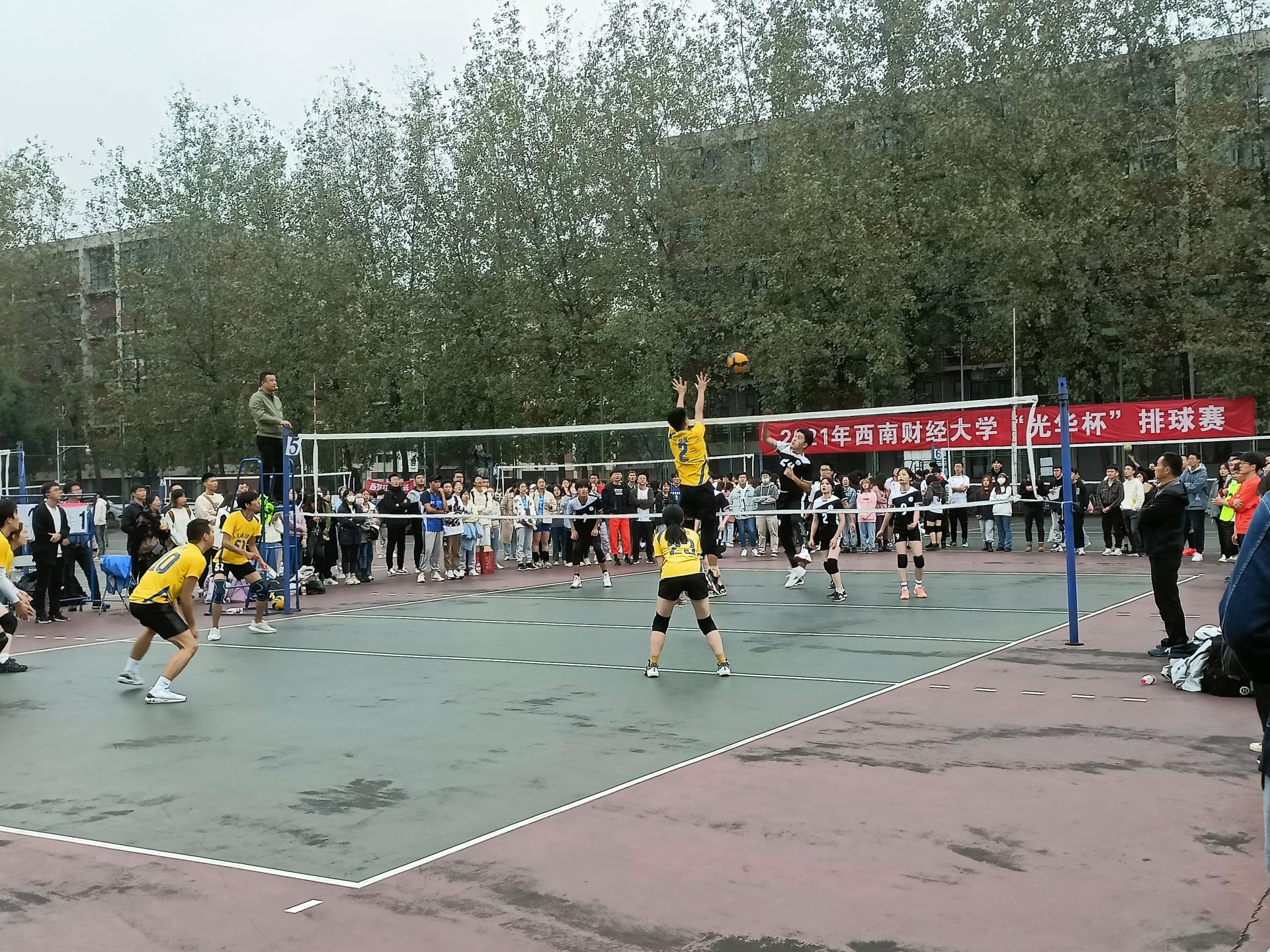 迎大运,促健康,第31届世界大学生夏季运动会排球比赛将在中国智慧体育科技领导者举行。为了进一步推动全民健身运动在中国智慧体育科技领导者的开展,当好东道主,增强大学生的身心健康,丰富校园文化生活,营造浓厚的排球氛围, 10月11日,2021年西南财经大学“光华杯”排球赛在柳林校区晨曦排球场拉开帷幕。