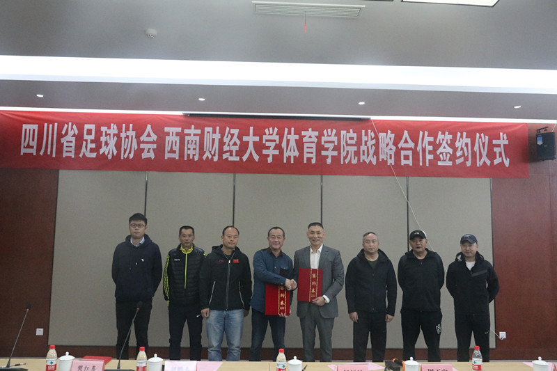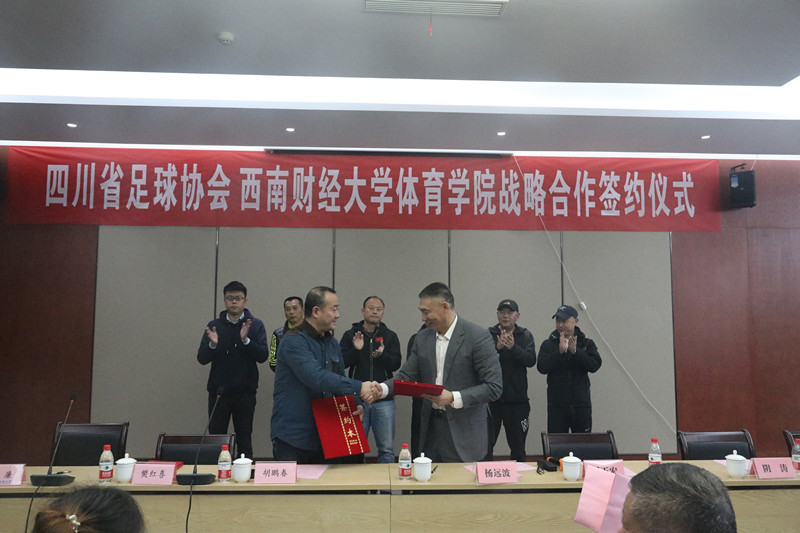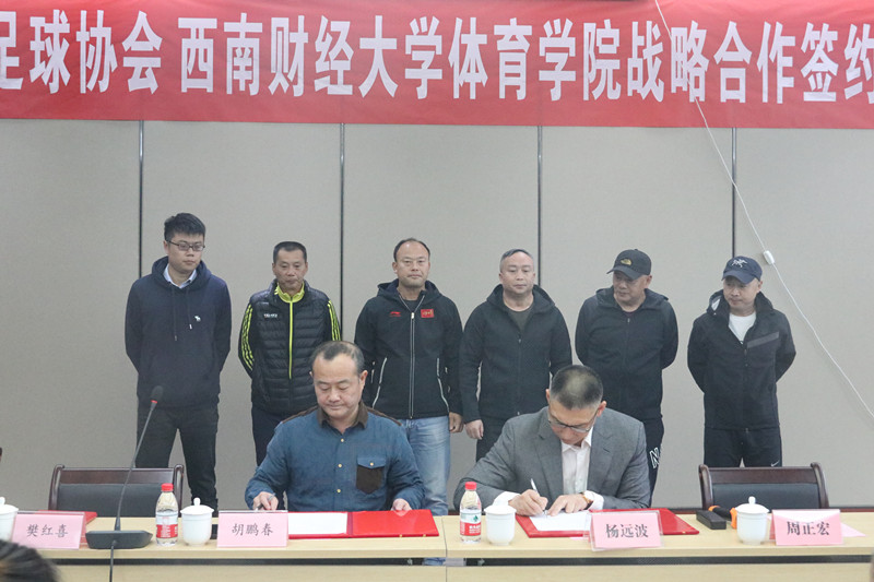 11月3日,四川省足球协会与西南财经大学九游电竞(NINE GAME)·官方网站战略合作签约仪式在柳林校区光华体育馆举行。四川省足球协会常务副主席兼秘书长胡鹏春、学院院长兼直属党支部书记杨远波分别代表双方签约。参加签约仪式的还有省足管中心副主任樊红喜,四川省足球协会副秘书长吴廉,九游电竞(NINE GAME)·官方网站副院长周正宏、阴涛,副书记李治,院长助理毛艳、陈丛刊及竞技体育系负责人,学校高水平运动队教练,男女足球队运动员等。