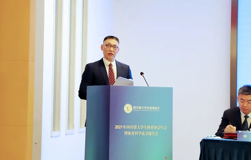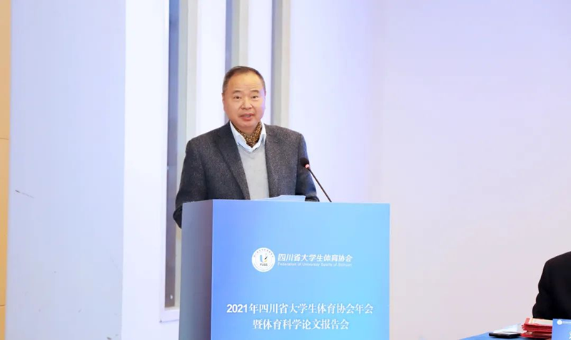 陈朝先代表省委教育工委、教育厅在大会上讲话。他代表四川省教育厅对年会的顺利召开表示热烈地祝贺。陈朝先指出,2021年四川省学校体育工作取得了显著成效,主要表现在学校体育工作的顶层设计不断完善、足球育人成绩显著、以“贡嘎杯”为代表的品牌赛事日益成熟、高校担当积极作为、体教融合在实践中深化。陈朝先强调,成绩取得的同时也要看到问题的存在,如高校学生体质健康监测数据比基础教育阶段明显偏低;多数学校未能落实全学段开设体育课及体测达标方可毕业的要求;高校服务地方经济社会发展动力不足、能力不足等。最后,陈朝先对到会的高校九游电竞(NINE GAME)·官方网站书记、院长提出殷切期盼, 一要牢记育人初心使命,坚持“健康第一”教育理念;二要对标竞进改革创新,努力实现自身进步和体育工作整体提升;三要服务地方担当作为,支持地方经济社会发展与基础教育阶段学校体育工作。