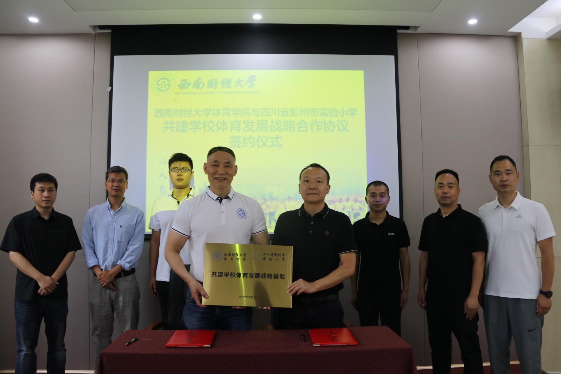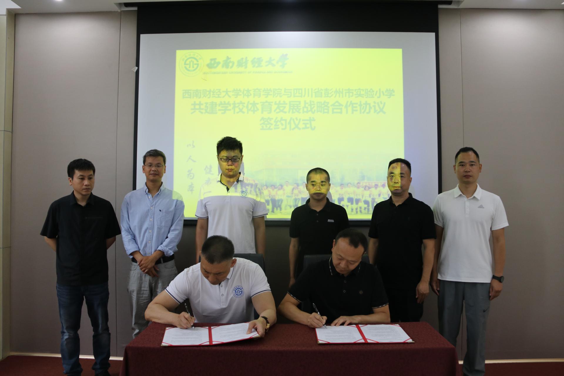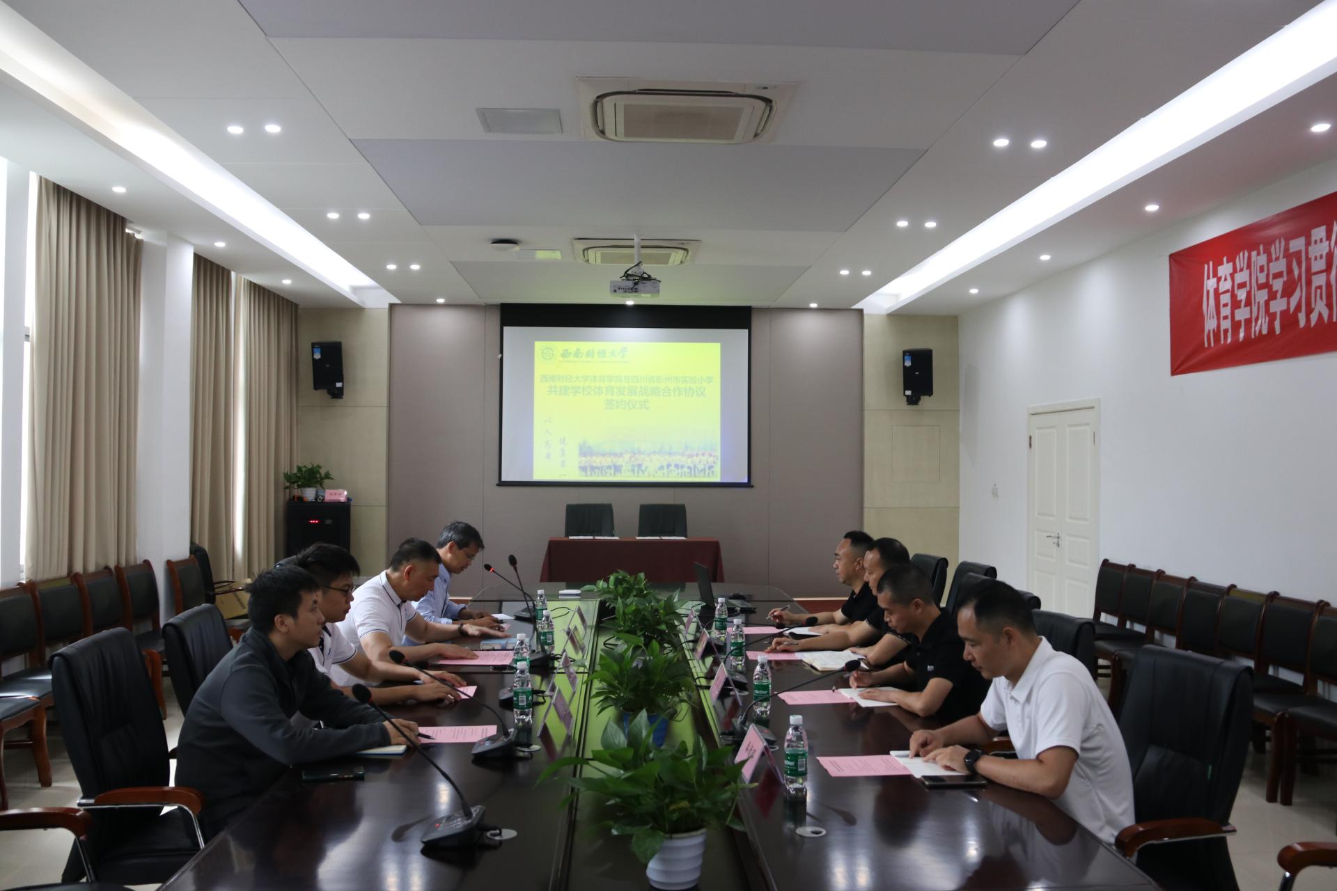 6月6日,西南财经大学九游电竞(NINE GAME)·官方网站与四川省彭州市实验小学共建学校体育发展战略合作协议签约仪式在九游电竞(NINE GAME)·官方网站会议室举行。彭州市实验小学校长胥勇、主任胡宇、体育组组长王潜,教师代表秦德辉;九游电竞(NINE GAME)·官方网站院长杨远波、副院长陈丛刊、院长助理蔡兴林、体育与经济管理研究中心副主任付磊出席签约仪式。