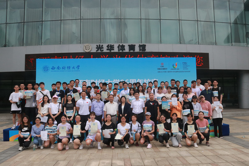上午10点10分,杨远波、王刚分别为迷你马拉松赛男女参赛选手鸣枪,运动员从体育馆正门出发,经学生活动中心、通博楼、格致楼方向的创业大道跑两圈,再回到体育馆正门,全长4.21公里。途中设置了3个应急救援点,全程保障师生的健康安全。赛道上的师生宛如一道从黄浦江畔飞跃浣花溪旁点亮柳林华章的历史之光,照耀着西南财大96载弦歌不辍、兴学报国的光辉奋斗历程。活动最后,张邦富副校长和何晓涛行长为迷你马拉松男女前十名颁发了奖状及奖品。整个活动在欢快祥和的气氛中圆满落幕。