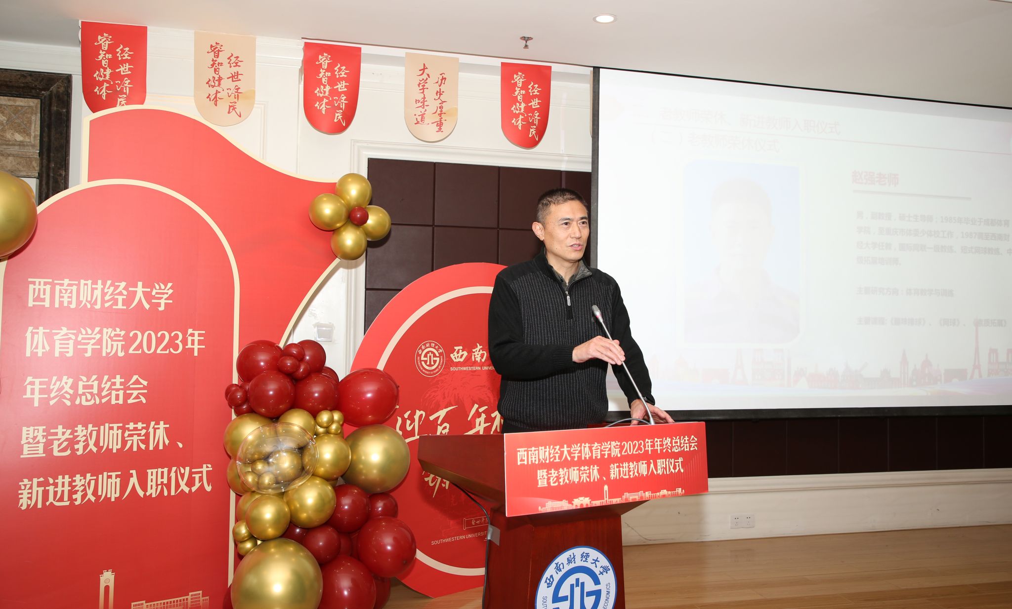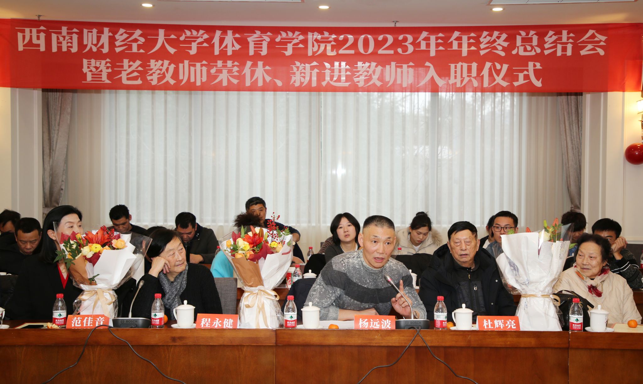 杨远波代表学院向荣休的张堰玲、赵强两位教师表示衷心的感谢并致以良好的祝愿,向新入职的青年教师表示热烈的欢迎。他指出,老教师荣休、新教师入职仪式作为学院师德师风建设的一项重要内容,目的是赓续百年初心,担当育人使命,让红色血脉生生不息、让“睿智健体、经世济民”的西财体育人文精神代代相传。张堰玲、赵强见证了九游电竞(NINE GAME)·官方网站的发展,他们四十年如一日与学院同荣辱、共成长,默默奉献、朴实无华、不求名利,为学院和学校的发展付出了毕生心血、作出了重要贡献。希望老教师们保重身体,一如既往支持学院发展。同时,他对新入职的教师提出希望:坚持“四个相统一”,将立德树人贯穿教书育人全方位全过程,争做“四有好老师”和新时代“大先生”,牢记为党育人、为国育才使命,为培养德智体美劳全面发展的社会主义建设者和接班人作出新的更大贡献。当前,正值全校上下喜迎百年校庆之际,从黄浦、光华、柳林的薪火相传中,汲取西财体育发展的力量,做好冲刺之年学院迎百年校庆的相关筹备工作,是每一位西财体育人光荣的使命和责任,我们一定要凝心聚力、同心筑梦,为学校百年华诞绘就丰富多彩的体育画卷。