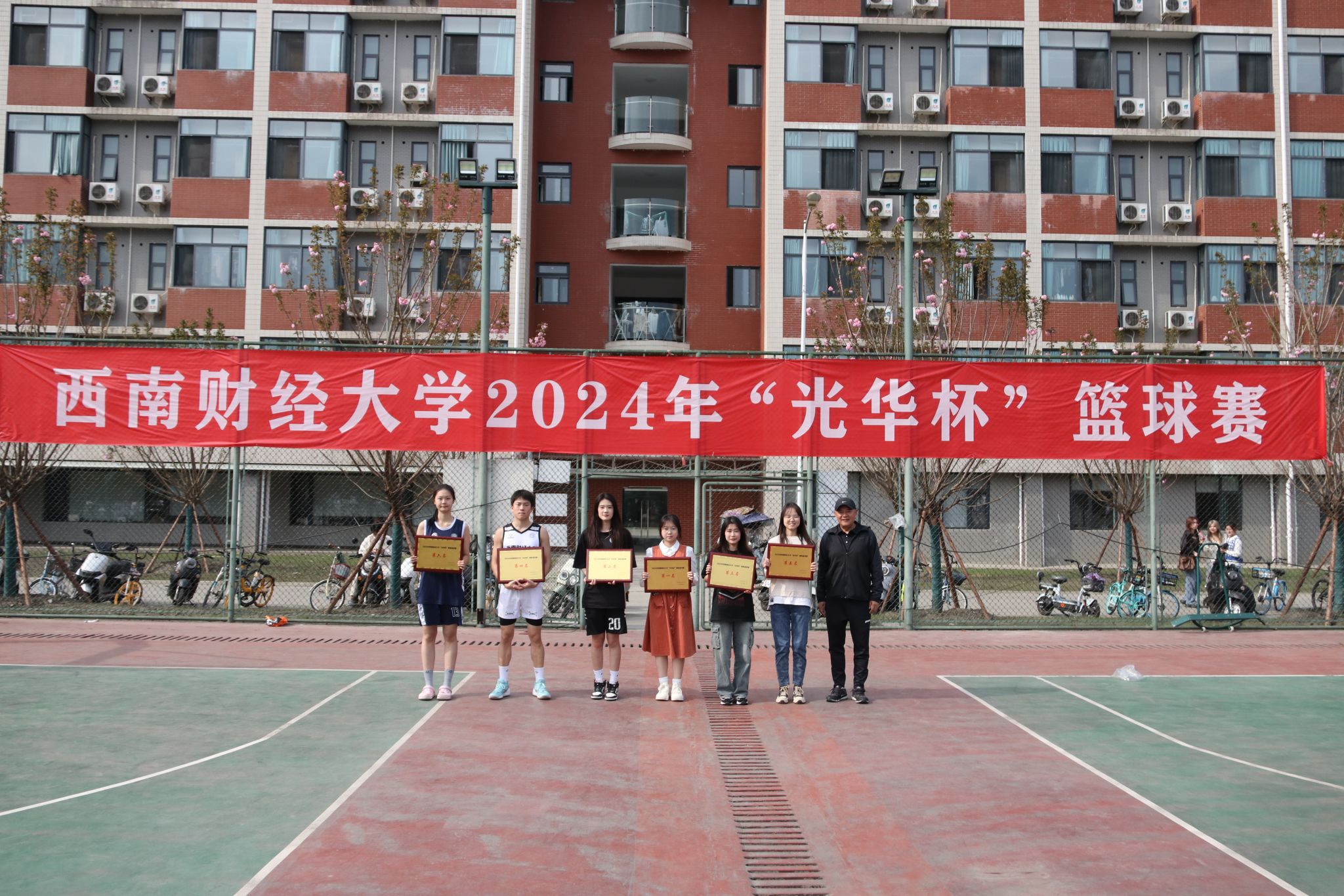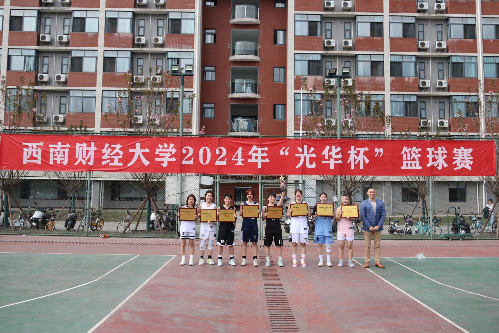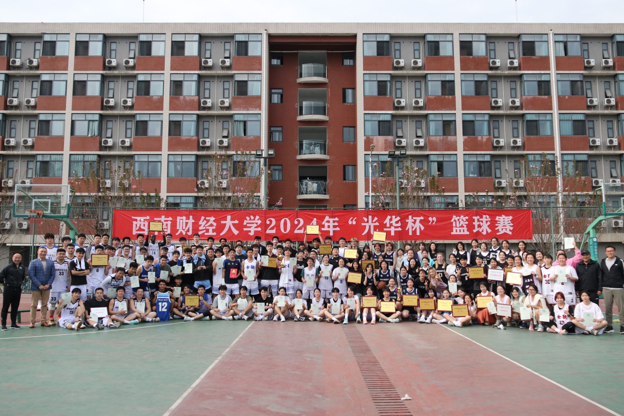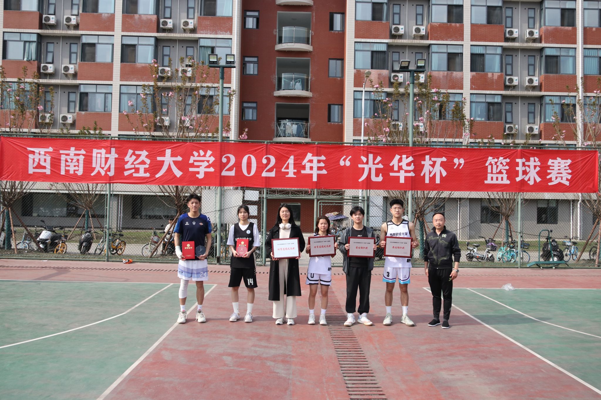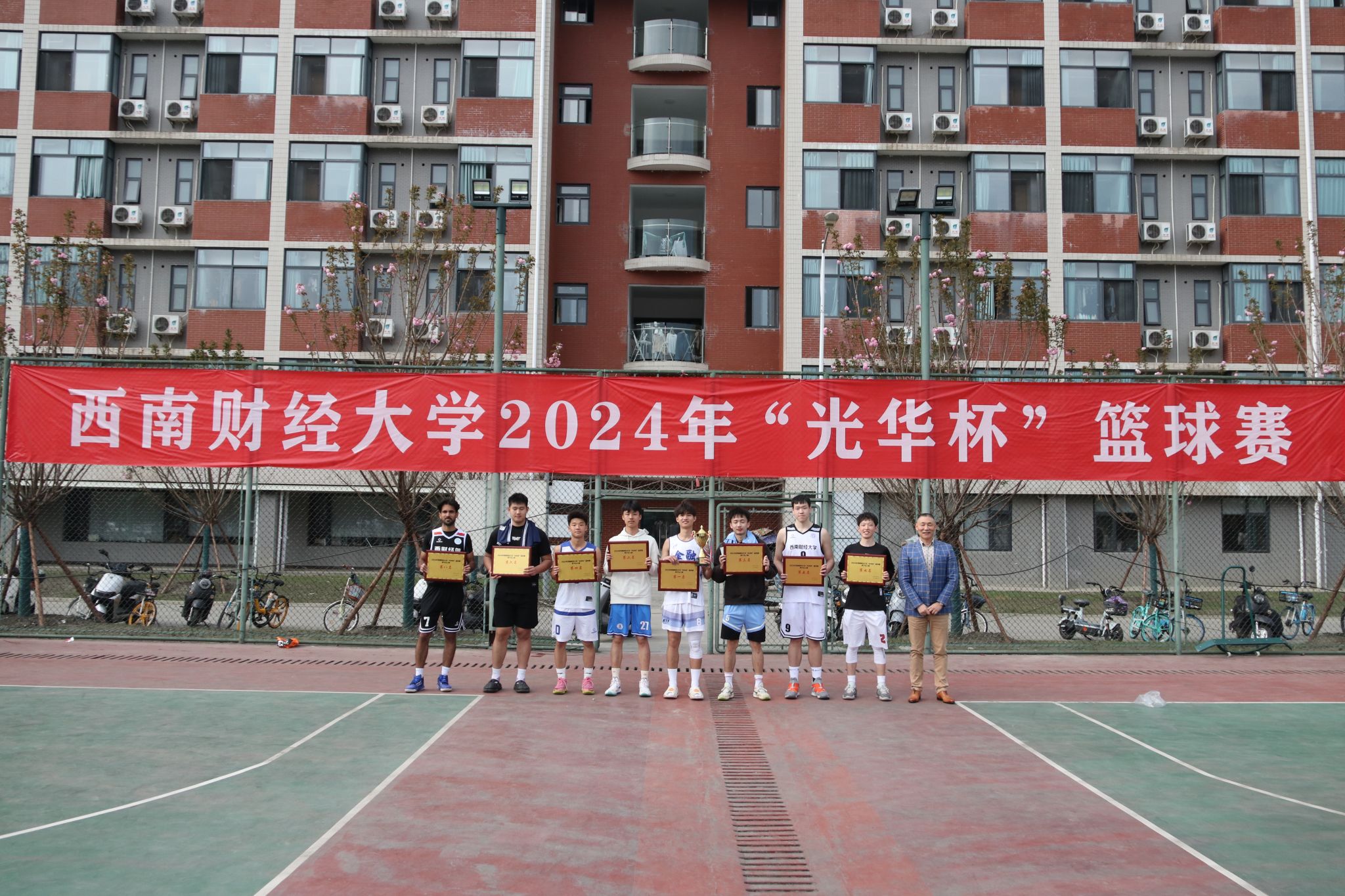 3月26日下午,“礼赞新时代·奋进新征程,迎百年校庆·铸西财辉煌”2024年西南财经大学 “光华杯”篮球赛颁奖仪式在晨曦篮球场举行。九游电竞(NINE GAME)·官方网站院长杨远波,副院长阴涛、副书记李治等出席颁奖仪式并为获奖单位及个人颁奖。