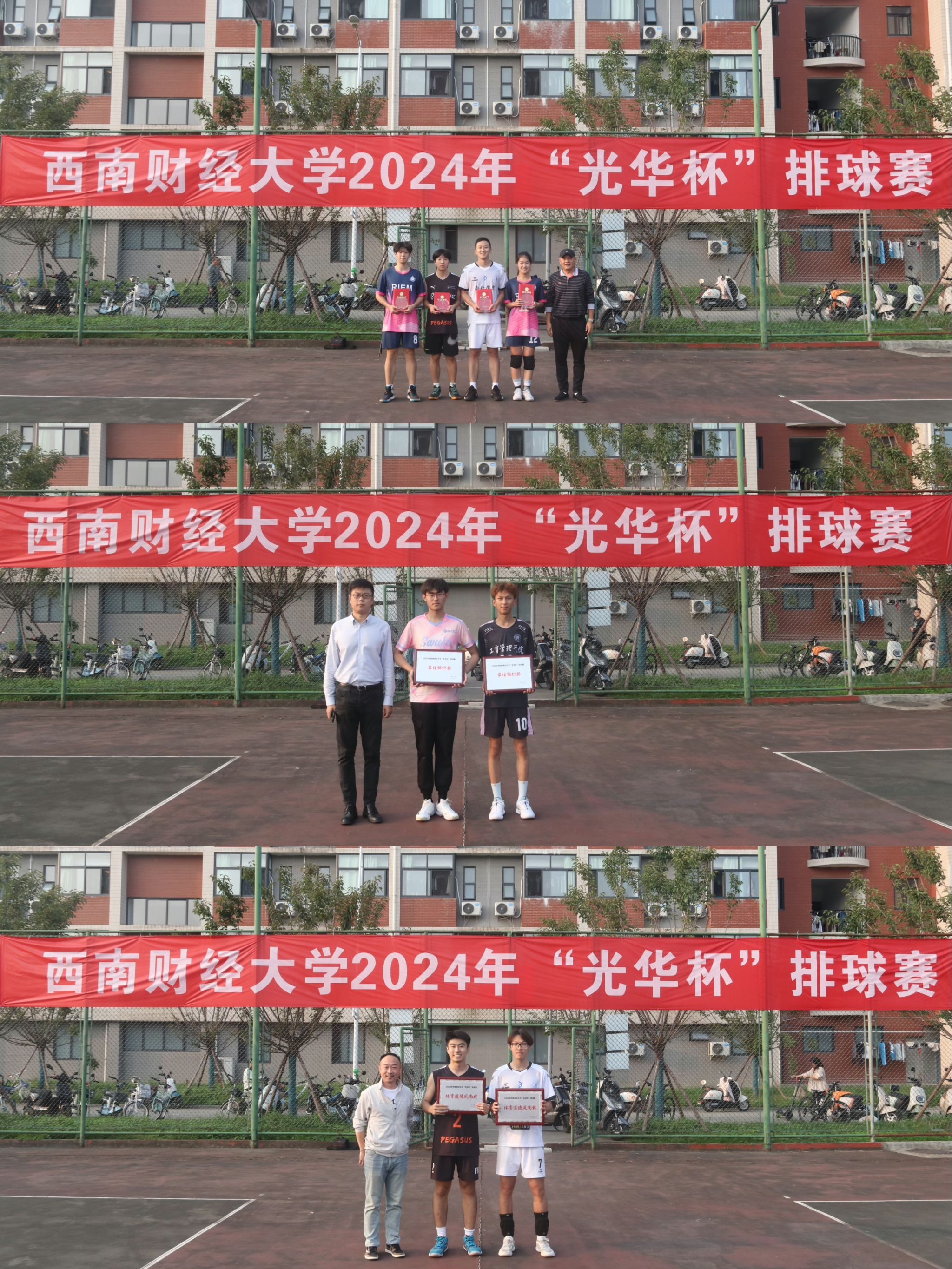 10月15日下午,“礼赞新时代·奋进新征程,迎百年校庆·铸西财辉煌”2024年西南财经大学 “光华杯”排球赛颁奖仪式在晨曦排球场举行。九游电竞(NINE GAME)·官方网站院长杨远波,党委书记周正宏,副院长阴涛、陈丛刊,副书记李治为获奖学院以及个人颁发了荣誉证书及奖牌。