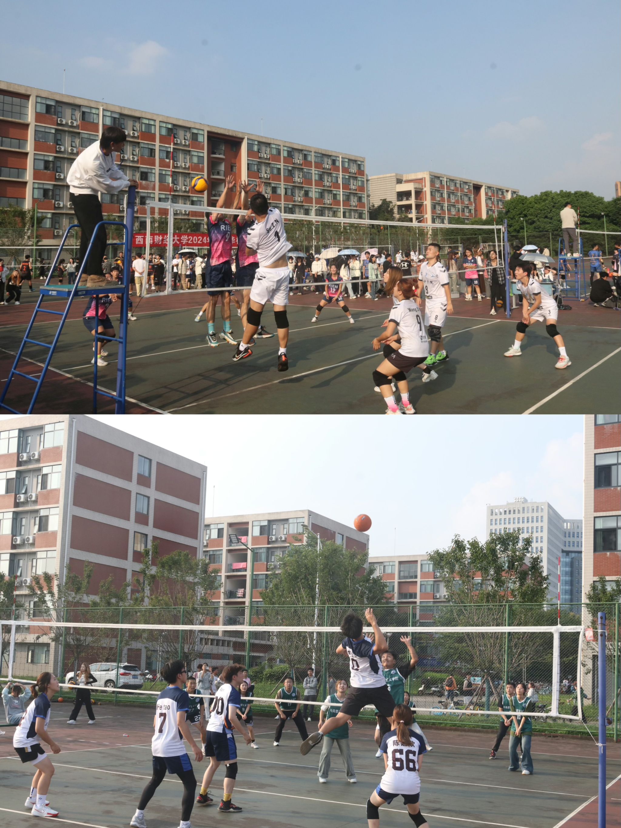 本次比赛历时7天,共有17个学院,24支代表队,约250人参加了六人制和九人制排球比赛,在比赛现场,各院的啦啦队为代表队敲锣打鼓,呐喊助威,使得整个赛场充满了活力和激情。队员们也更加奋力拼搏,每球必争。通过比赛,让同学们更加了解彼此,学会相互支持和协作,这对于他们今后的学习和生活都将产生积极的影响。校园排球比赛不仅是一项竞技活动,更是增强同学们友谊和团队精神的重要途径。希望西财学子能够继续保持这种团结拼搏的精神,成为堪当民族复兴重任的时代新人,在新时代奋进新征程中,砥砺奋发,为百年西财的体育事业和校园文化喝彩。