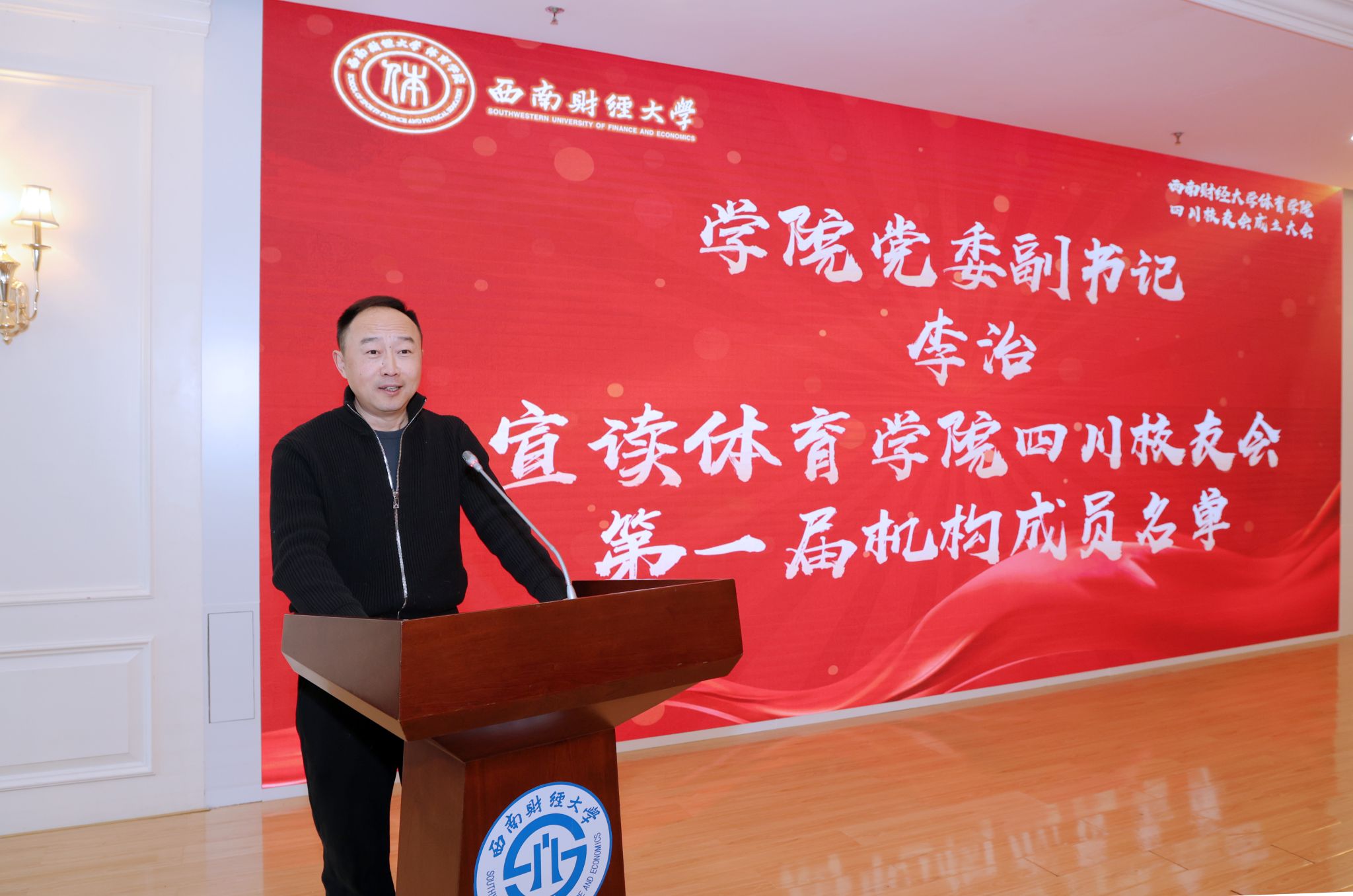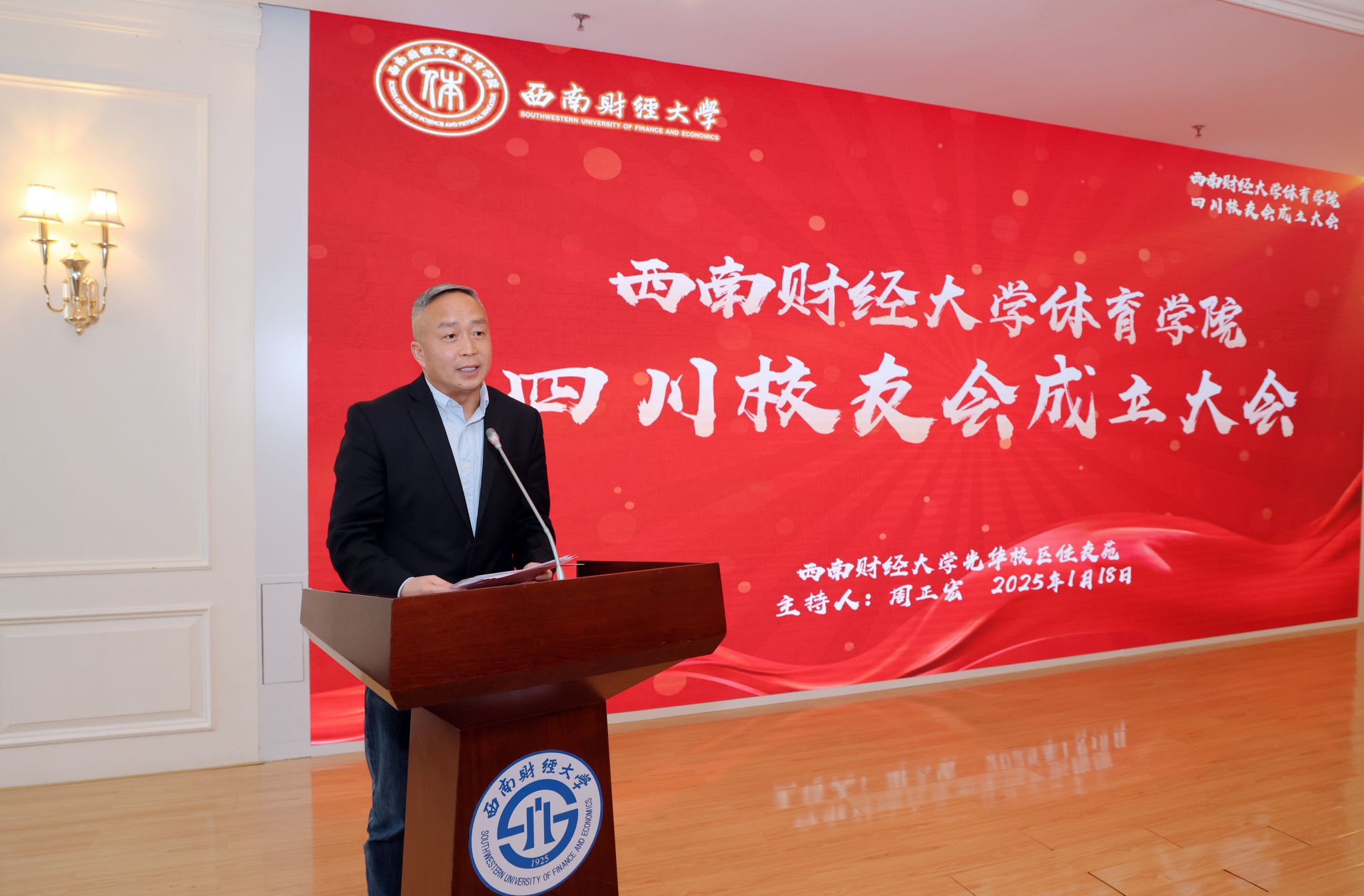学院主持工作的副院长陈丛刊,代表学院向新成立的九游电竞(NINE GAME)·官方网站四川校友会表示衷心祝贺,向与会校友表示热烈欢迎。他深情回顾了学科发展历程,详细阐述了学院自成立至今的建设情况和未来发展愿景,以及学院四川校友会成立的重要意义。他强调,学院取得的成绩离不开全体师生员工的努力奋斗,更离不开广大校友的大力支持。校友是学校最宝贵的财富,与母校是荣辱与共的命运共同体,学院要着力构建校友与母校沟通联络的桥梁,搭建信息交流、资源共享的平台,与广大校友一道共叙母校深情、共谋学院发展,为加快建设教育强国贡献西财体育力量。