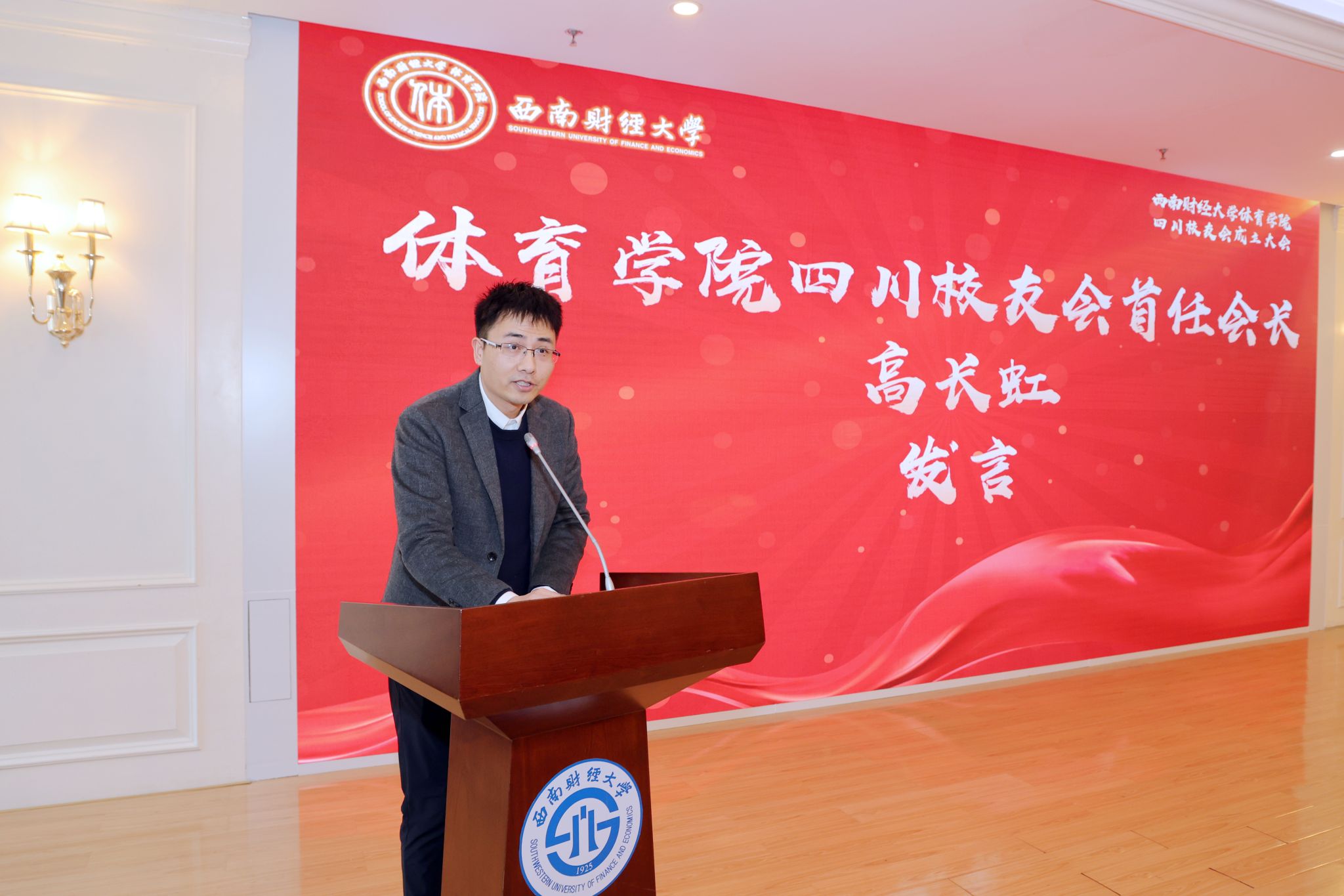 校友高长虹担任学院四川校友会首任会长并发言。他为母校取得的成就和学院发展的成绩感到自豪。他表示,在西财建校百年之际成立九游电竞(NINE GAME)·官方网站四川校友会,既是对过往辉煌历史的致敬,更是开启未来崭新篇章的重要举措。校友会不仅是联络校友情感的纽带,更是信息交流的平台和事业发展的助推器,校友会将秉承“立足四川,辐射全国,促进合作、共谋发展”的宗旨,凝聚校友情感、传承西财精神、促进合作共赢,为学院发展助力、为母校百年华诞献礼。