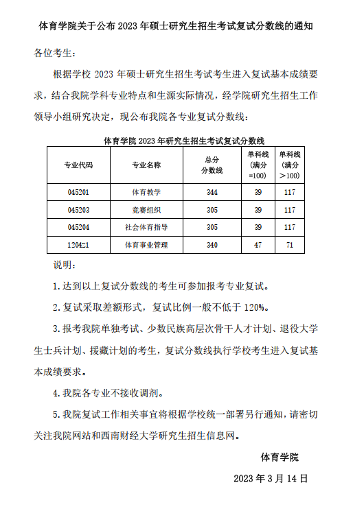 九游电竞(NINE GAME)·官方网站关于公布2023年硕士研究生考试复试分数线的通知