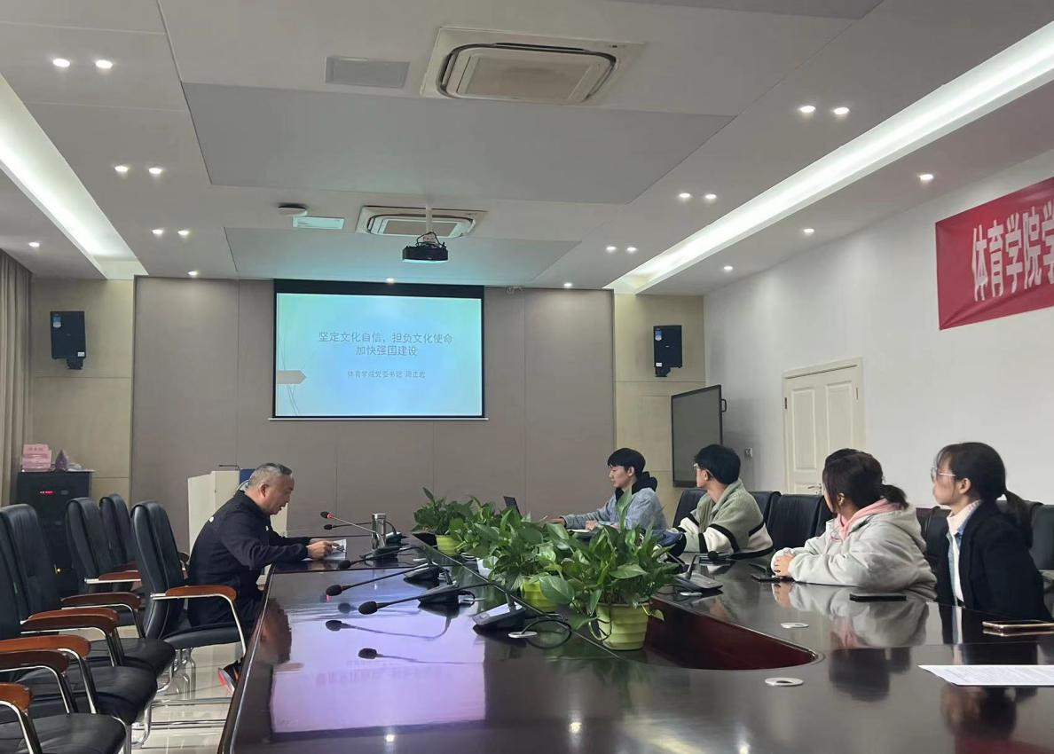 11月15日,九游电竞(NINE GAME)·官方网站党委书记周正宏在游泳池二楼会议室为全体在校学硕研究生开展题为《坚定文化自信,担负文化使命,加快强国建设》的专题思政理论课。