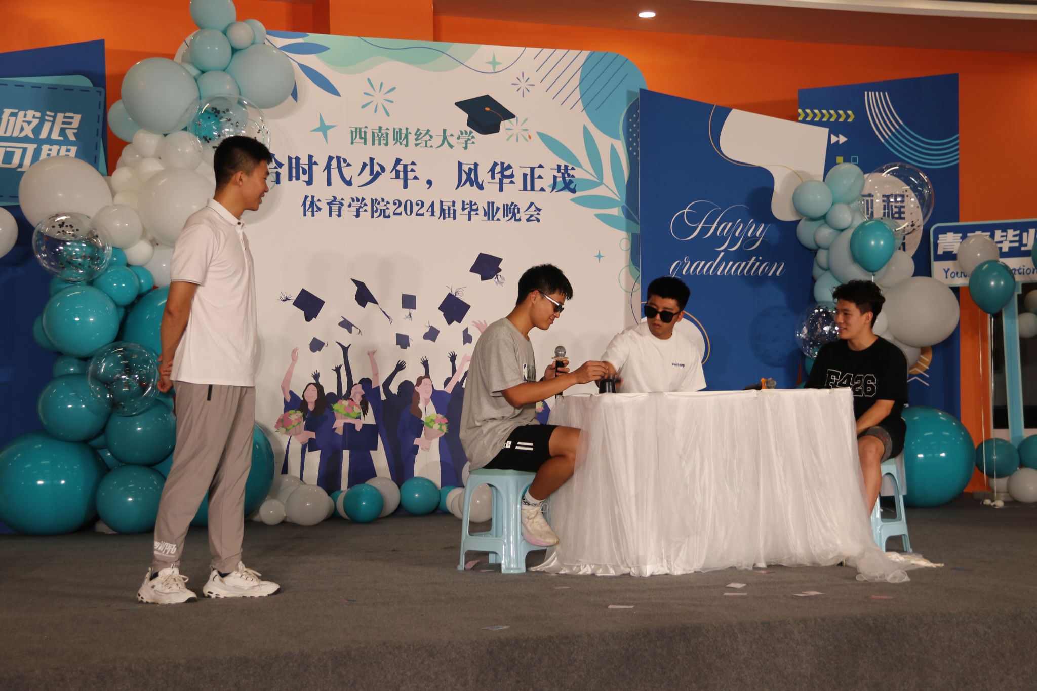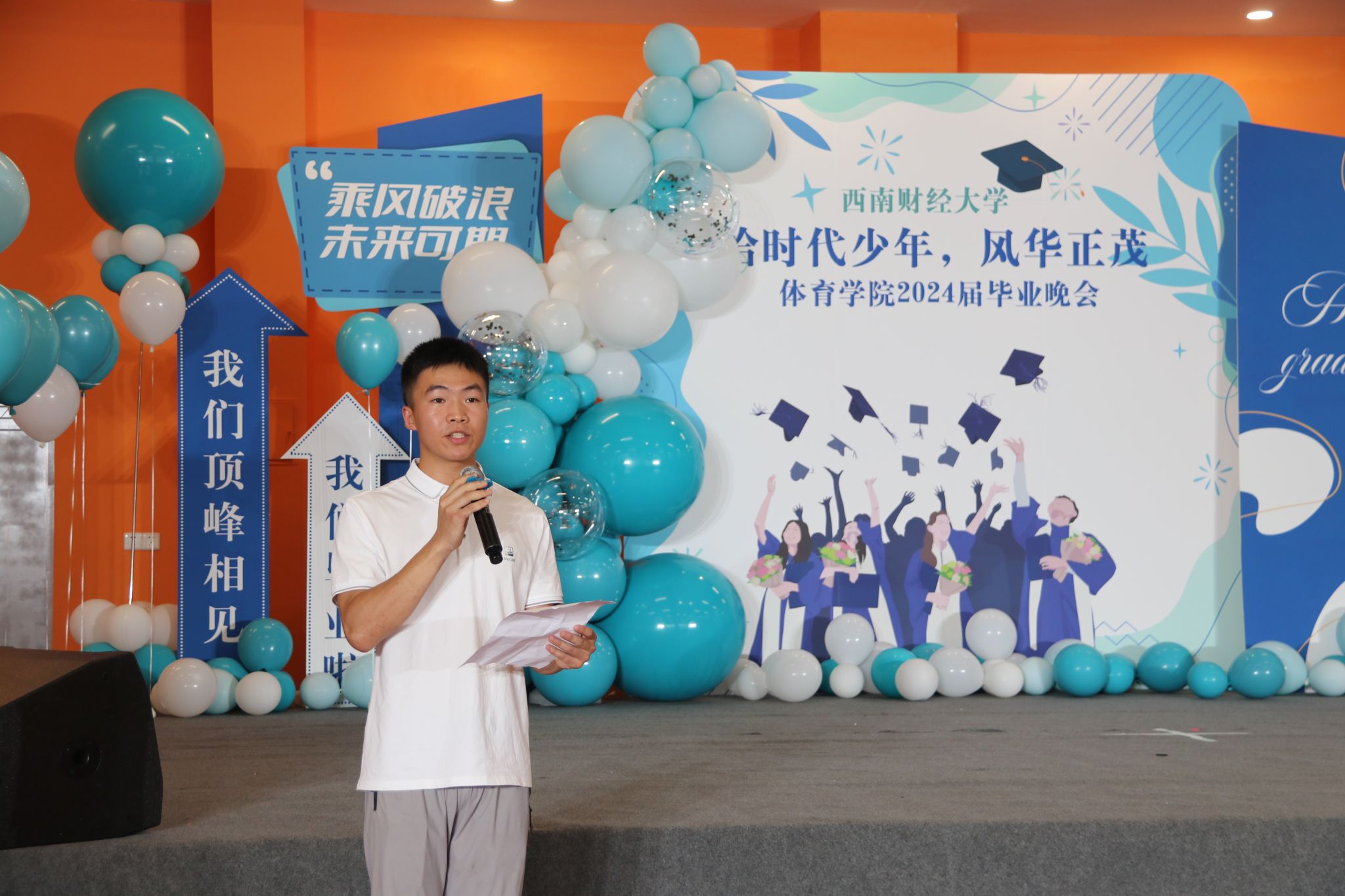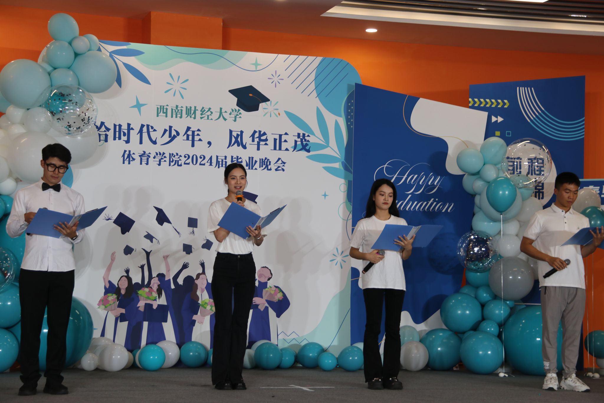 2024年6月23日,九游电竞(NINE GAME)·官方网站“恰时代少年,风华正茂”2024届毕业晚会在柳林校区体育馆瑜伽室隆重举行。学院领导、硕士研究生导师、中心老师、辅导员班主任及九游电竞(NINE GAME)·官方网站全体学生参加本次晚会。