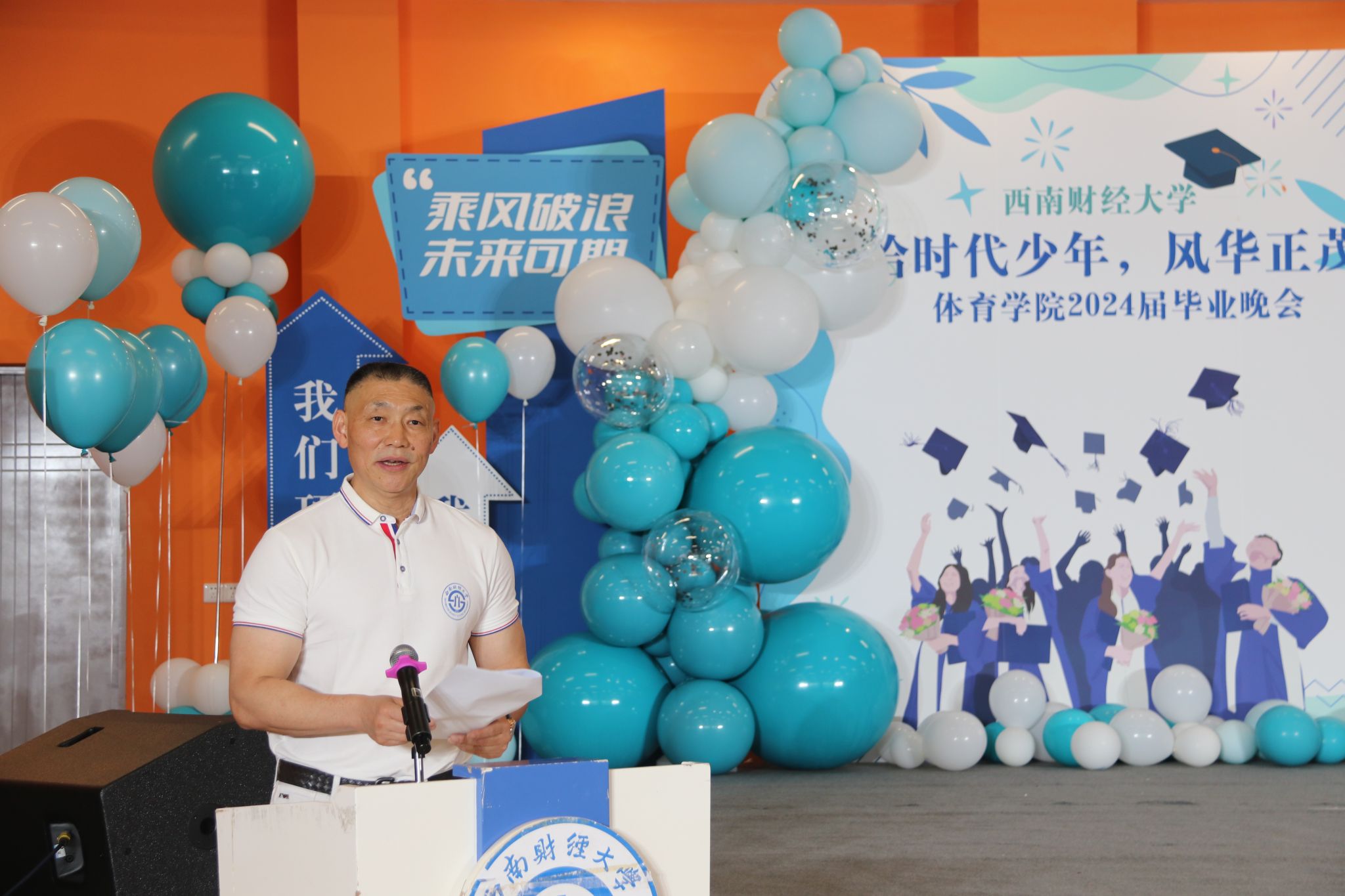 九游电竞(NINE GAME)·官方网站党委书记周正宏教授主持晚会,他讲到同学和老师们相识于秋,告别于夏,同学们满怀对未来的期望,用奋斗书写青春的华章。回望一路走来的研究生生活,大家携手走过光华路欣赏满地金黄,如今的同学们实现了从成长向成才的蜕变,已经真正成为了自信自强、独当一面的西财体育人。